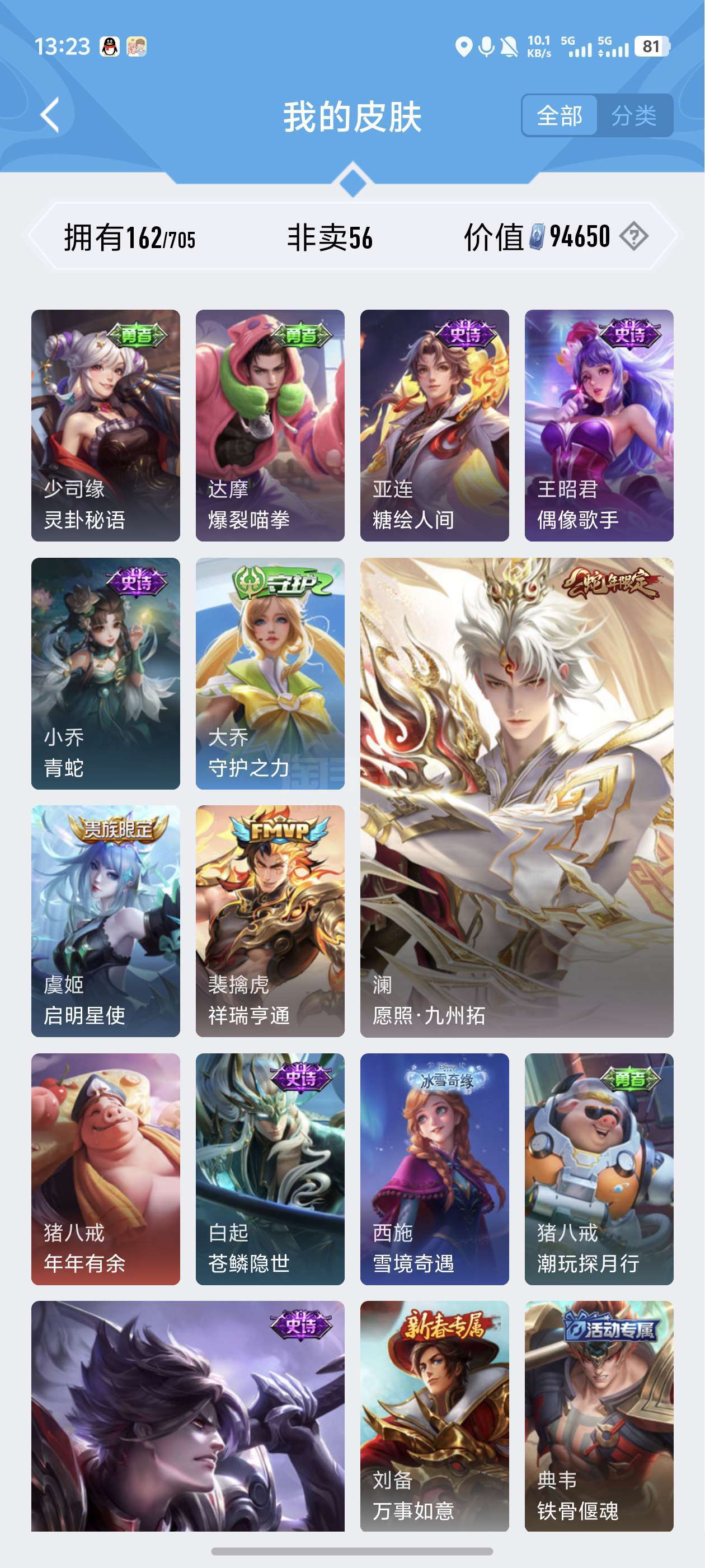 澜的蛇年限定 裴擒虎的限定皮肤 限定皮肤比较多 一体号 英雄联盟也有很多限定皮肤