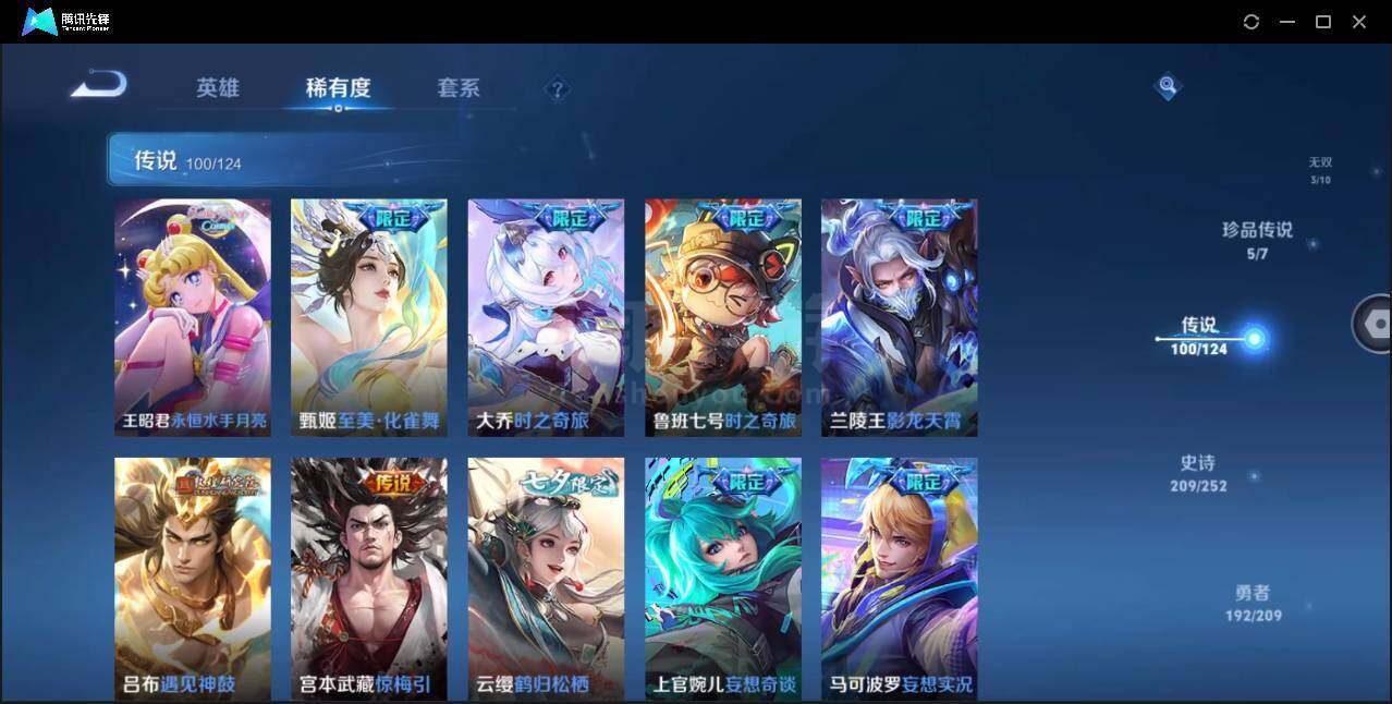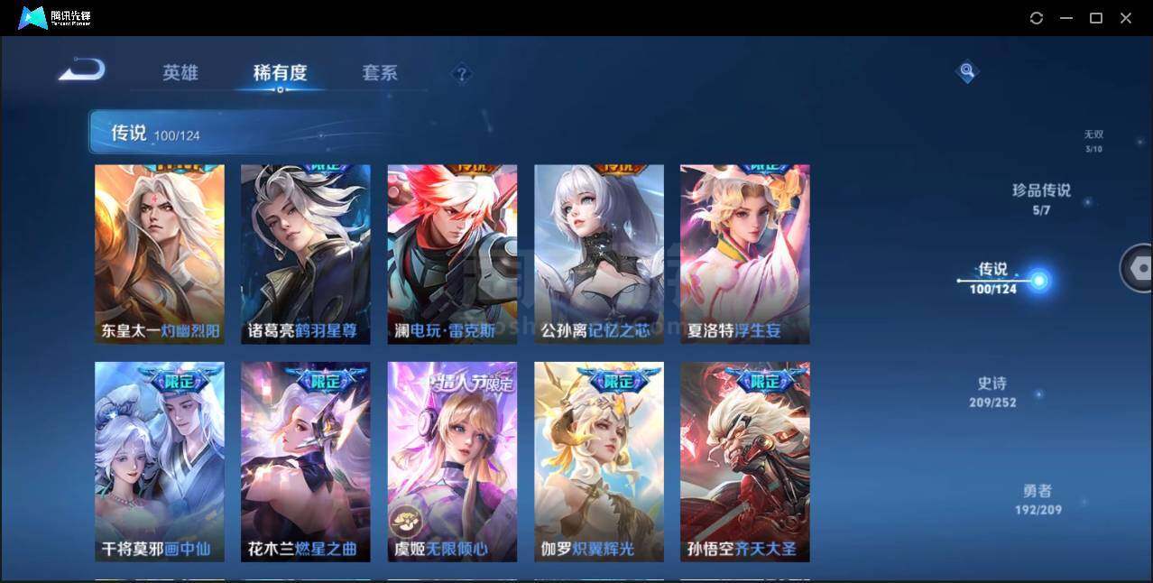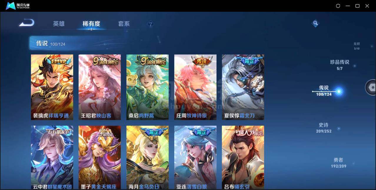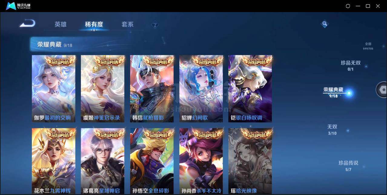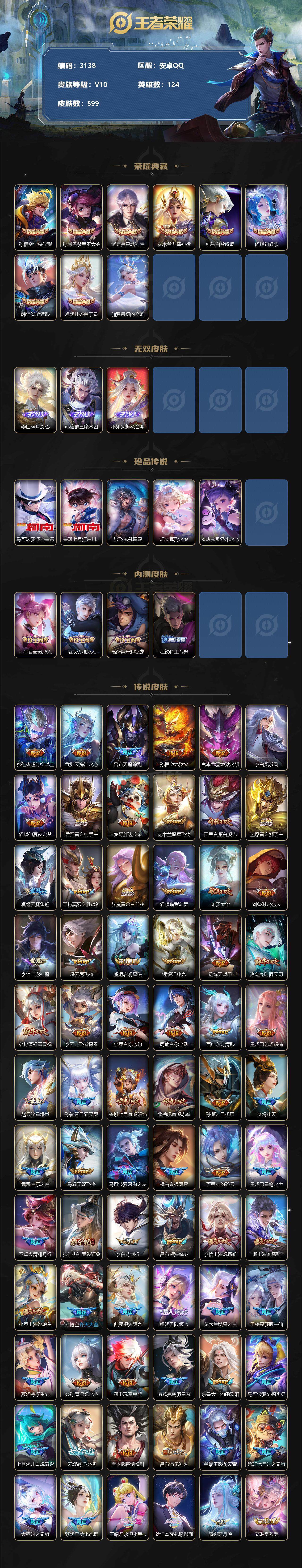 安卓Q-V10-最强王者段位-124英雄-599皮肤-9典藏-3无双-5珍品传说-95传说-201史诗