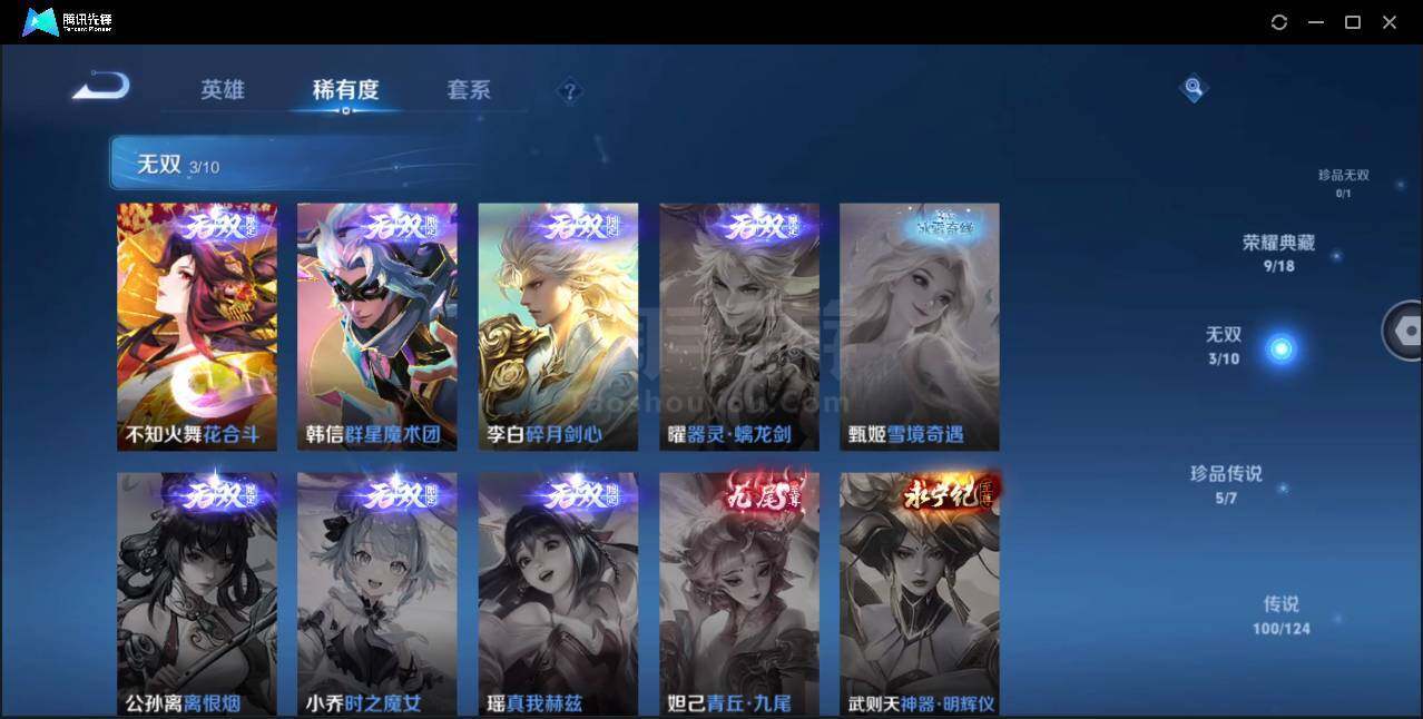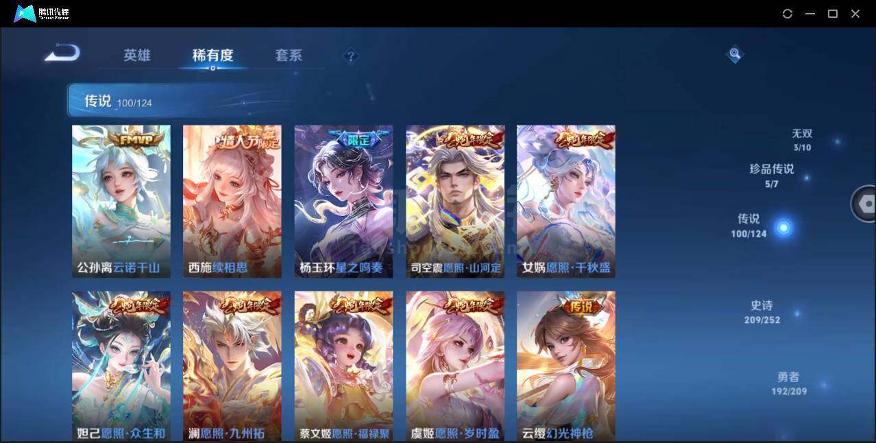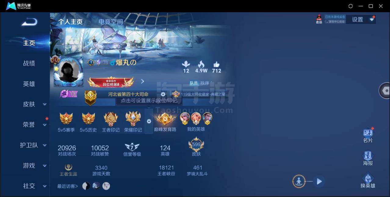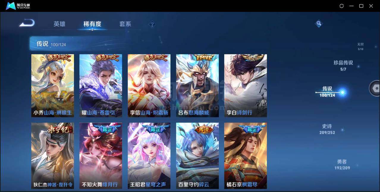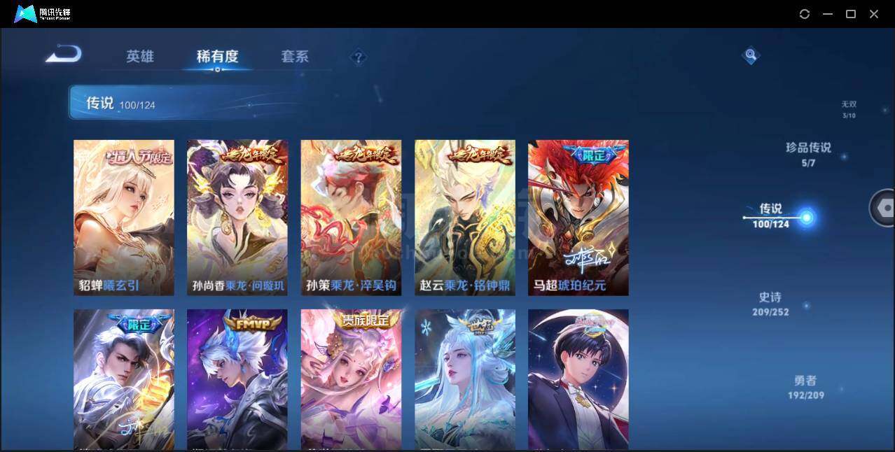安卓Q-V10-最强王者段位-124英雄-599皮肤-9典藏-3无双-5珍品传说-95传说-201史诗