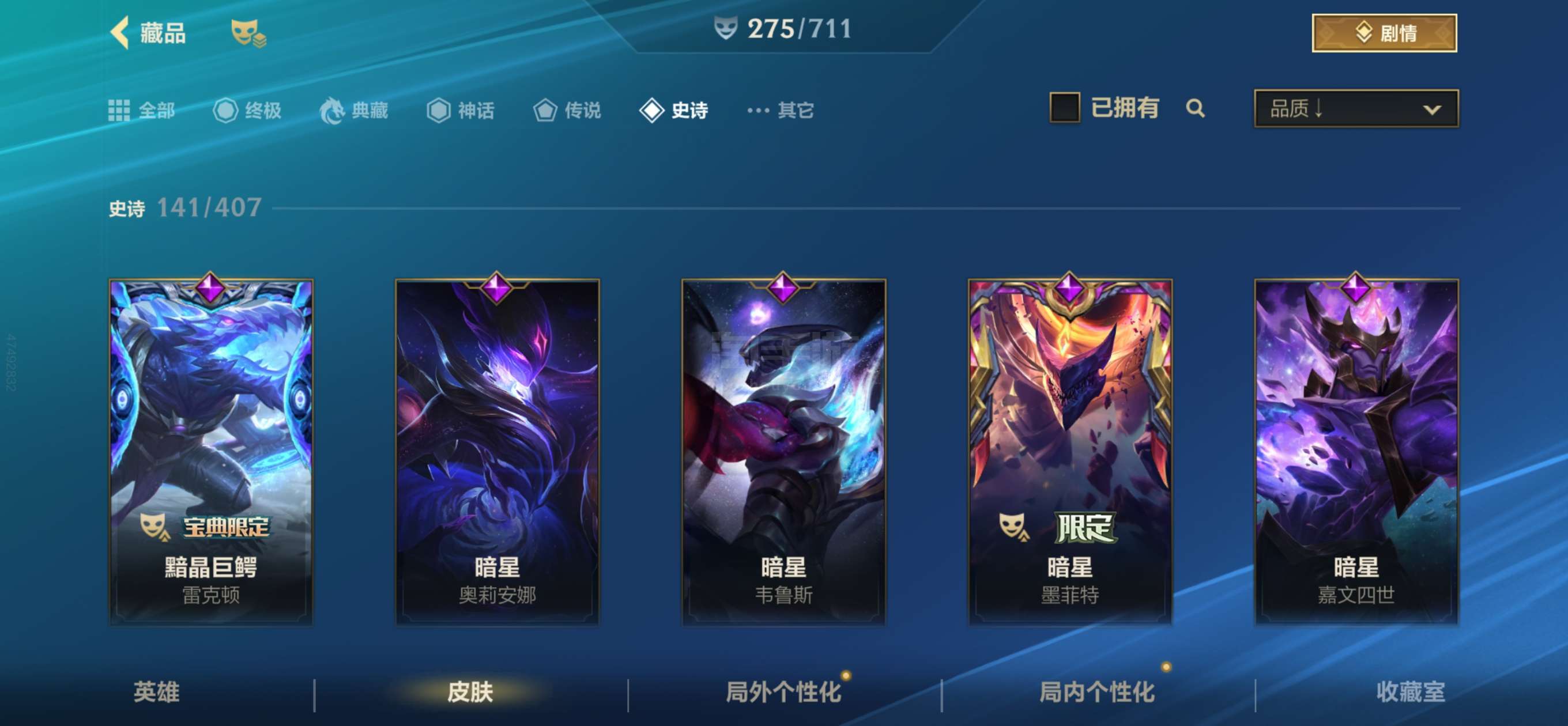 安卓微信-摄魂vn 神话永恩 龙虾 4w9收藏 400原石275皮肤