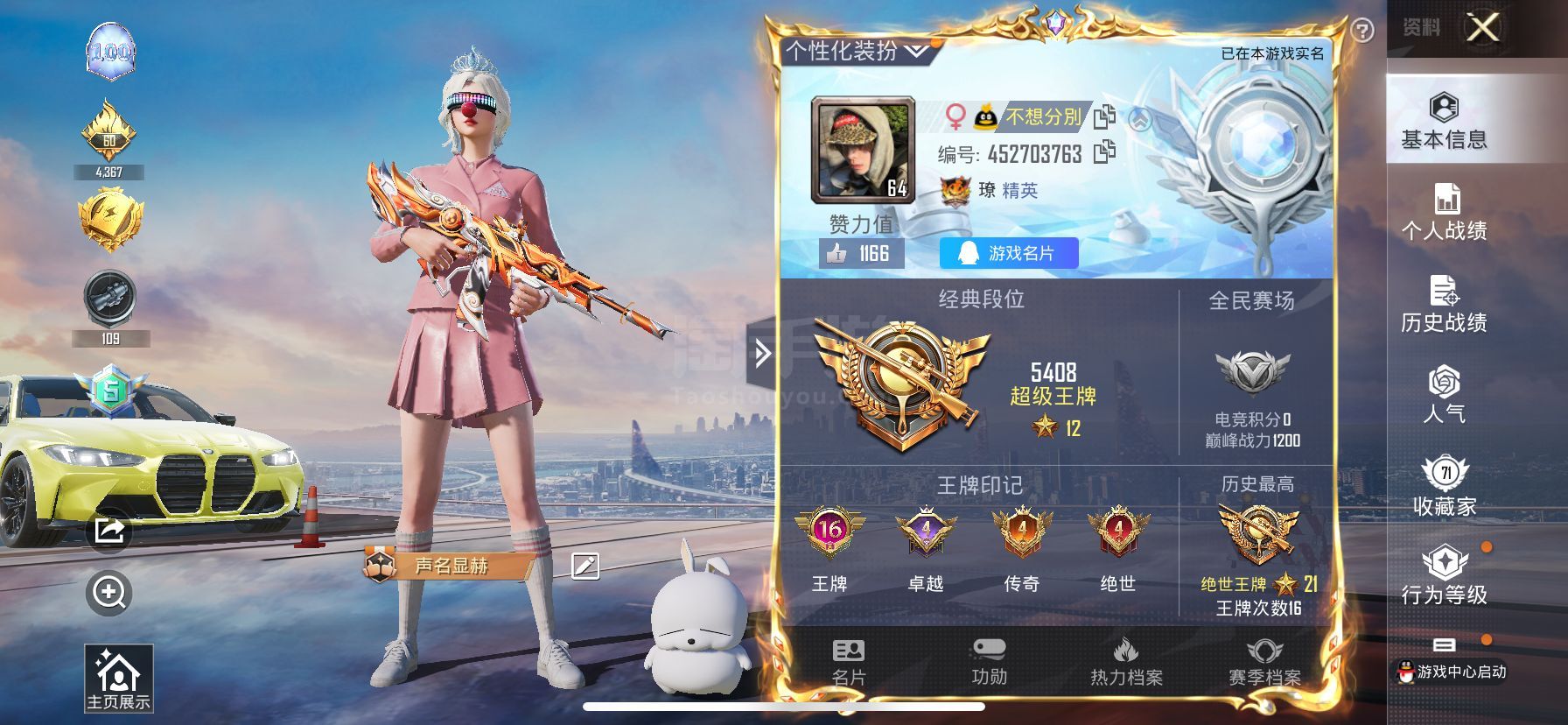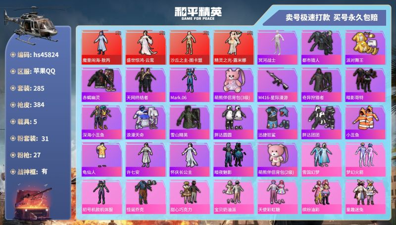 2006266_ 实名可改 苹果Q-77193热力值 16王牌印记 历史绝世王牌21星 173套装 201枪皮 极品身法素材女号 新老101 小丑 雪国 金鞋 赤蝎 天网 都市 火箭少女 巧克力三姐妹 和服 发光眼罩 m4至情至圣7级 AK甜心宝贝满级 番茄 【2载具】 宝马M4(圣保罗黄) 时空跃影(星辉银) 【12稀有】 火箭少女101 奇异狩猎者 赤蝎幽灵 寒蝎幽灵 M416-星际漫
