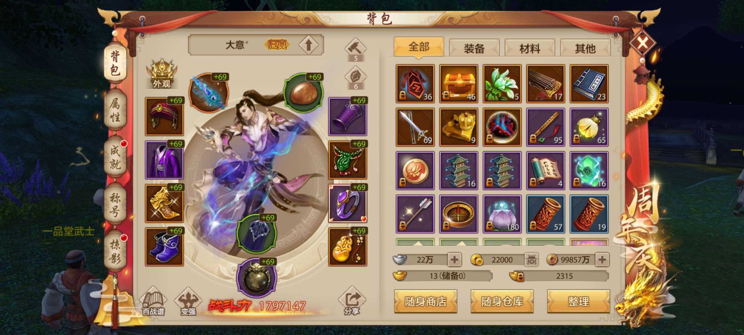 69刚从59升级,底子好潜力大,龙皮多,两个角色都有龙枪幻化。一直在更新,69的185万了,