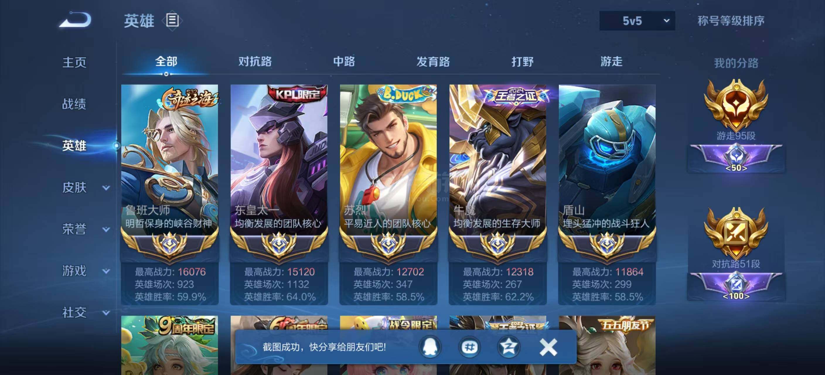 王者荣耀【安卓抢先服】【商品标题】:封号中,抢先服,95段国服游走,13大国10小国,1.6w战大国