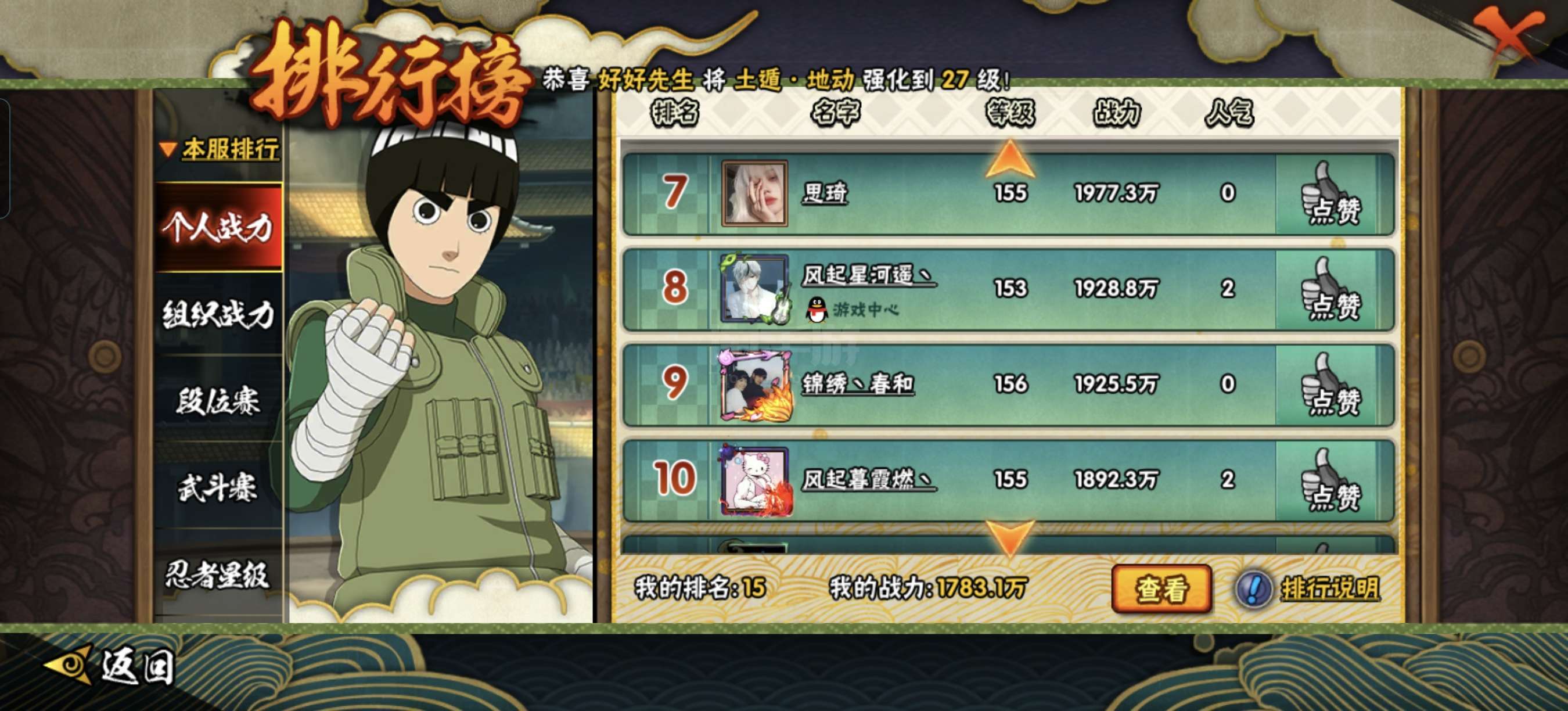 32s,1800w高战力前十五,一组,雨隐村加天道超熊猫