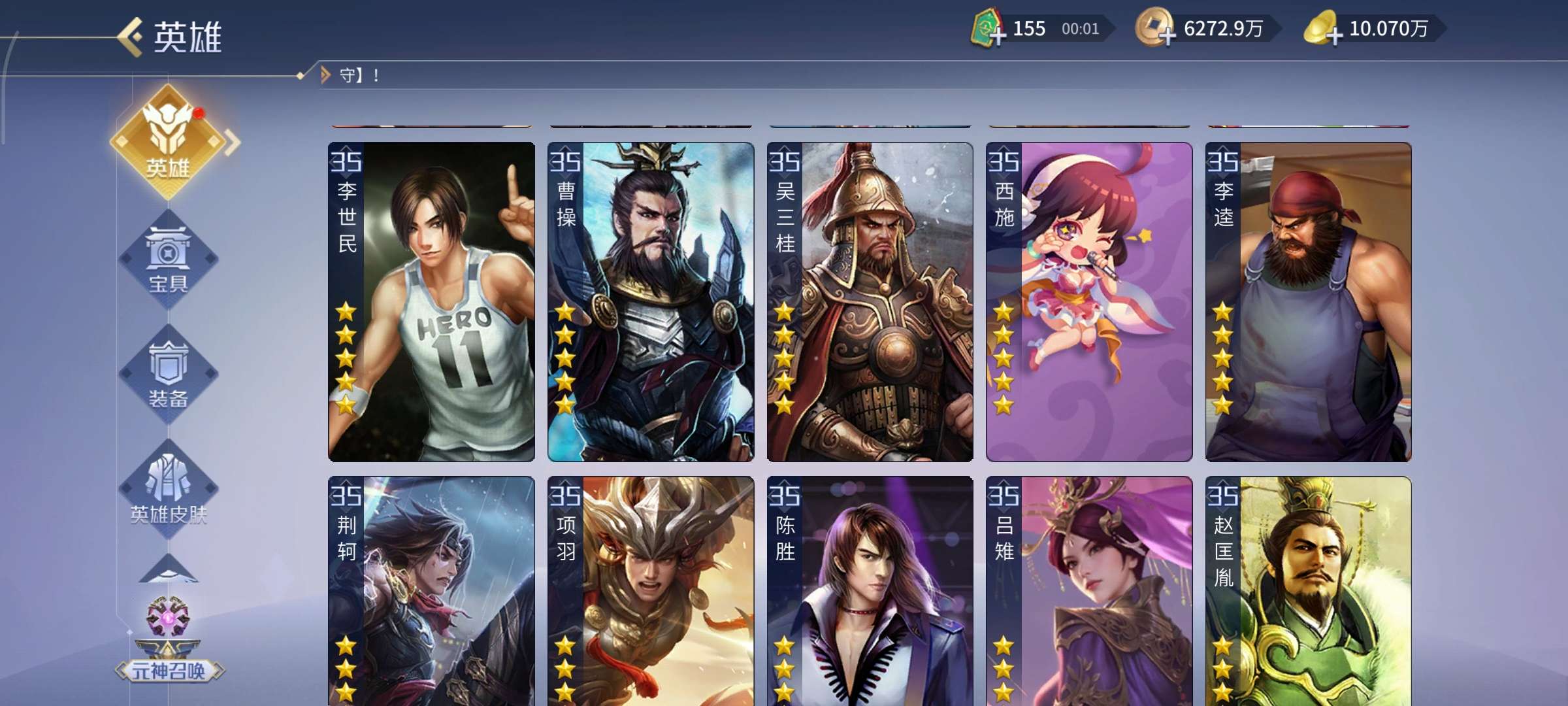 五星武将数量: