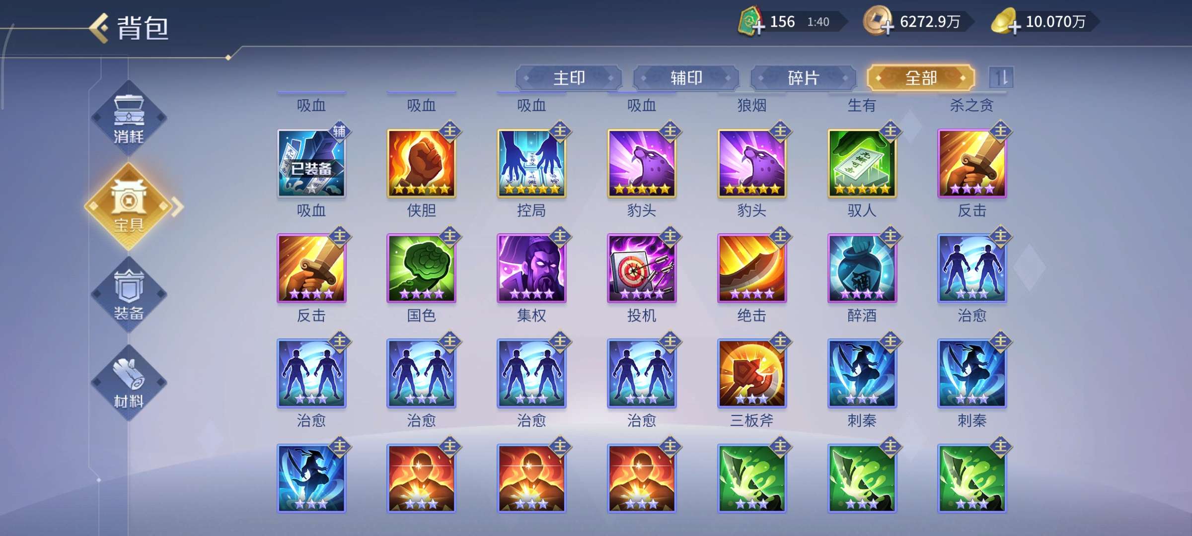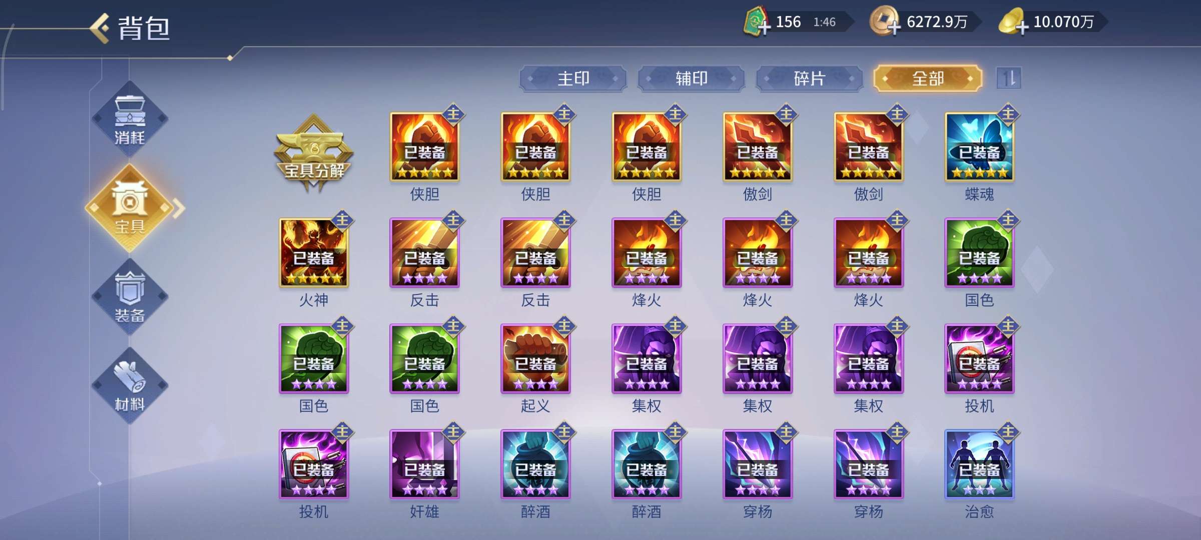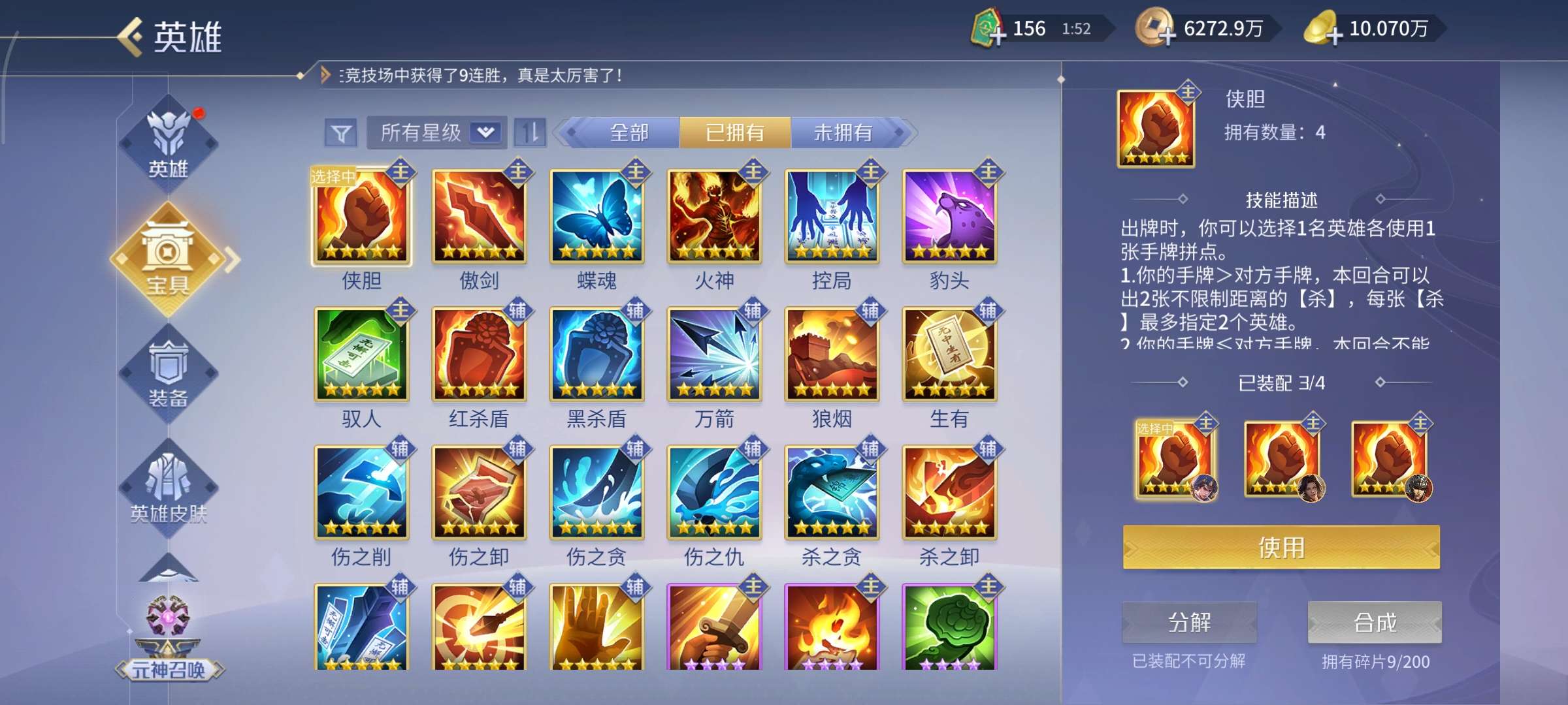 四侠胆,两傲剑,两豹头,剩下各一个,元宝号