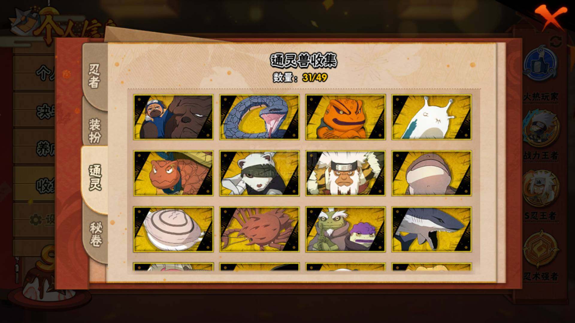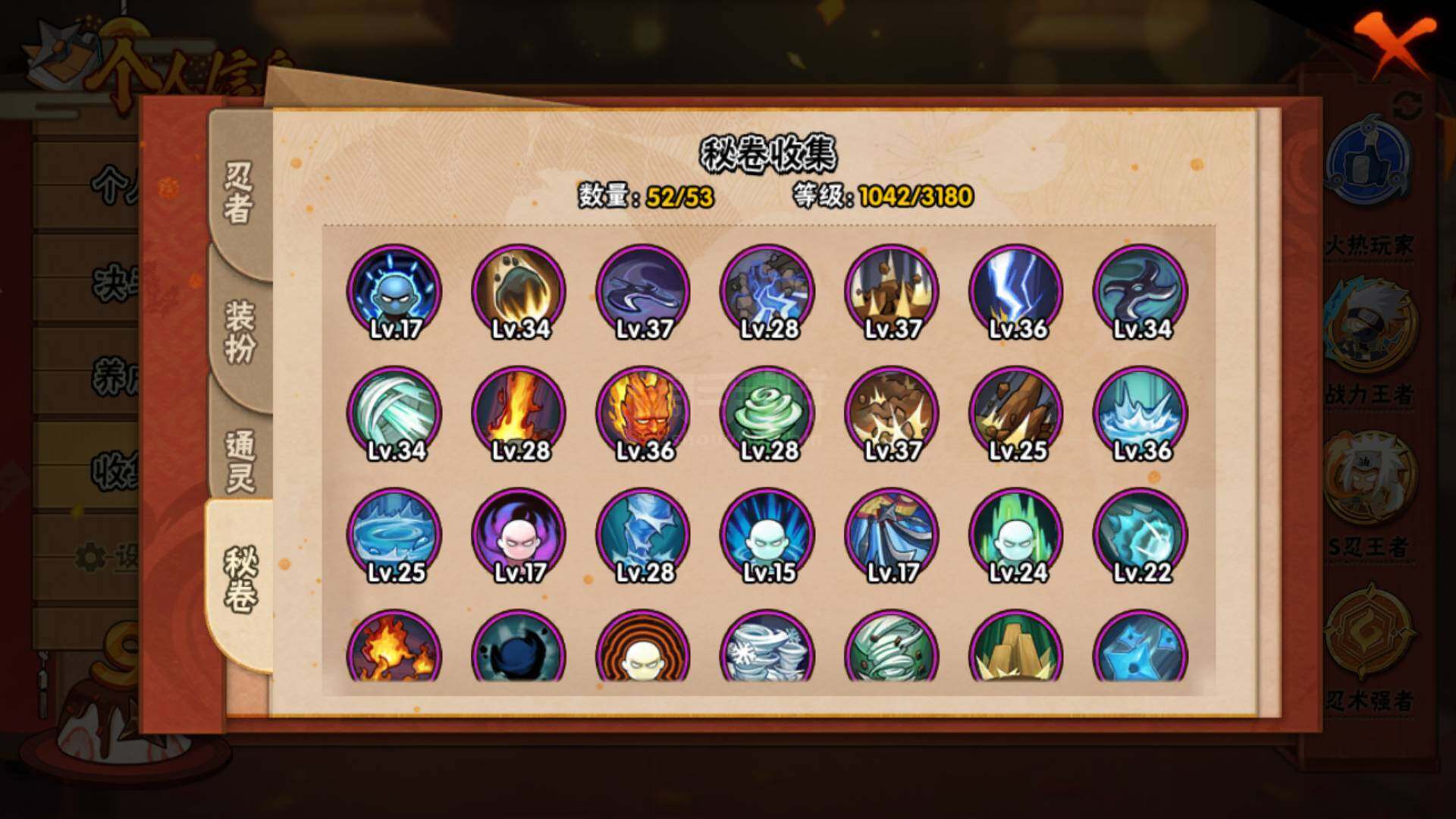 自来也(舞杰),自来也,自来也(仙人),大蛇丸,波风水门,佩恩(天道),宇智波鼬(须佐能乎),神秘面具男,千手扉间,艾(四代目),千手柱间,宇智波斑,长门(秽土),猿飞日斩(秽土),波风水门(秽土),纲手(百豪),千手扉间(秽土),宇智波斑(白面具),宇智波斑(秽土),药师兜(仙人),鬼灯幻月(二代目),金角银角(秽土),无(二代目),半藏(秽土),艾(三代目),佩恩天道(超),纲手,猿飞日斩,大野木(三代目),宇智波鼬(秽土),罗砂(四代目),千手柱间(秽土),忍界带土,木叶创立斑,三代目风影(秽土),八门凯,大野木(忍界大战),九喇嘛鸣人,大筒木金氏,忍战樱,神秘面具男 (红叶之刃),宇智波佐助(永恒万花筒),木叶创立( 柱间 ),秽土解斑,大筒木桃式(博人传),艾(忍界大战),止水(须佐能乎),旗木卡卡西(须佐能乎),大筒木舍人(最终章),自来也(传说中的三忍),漩涡鸣人(暴怒·第六尾)
