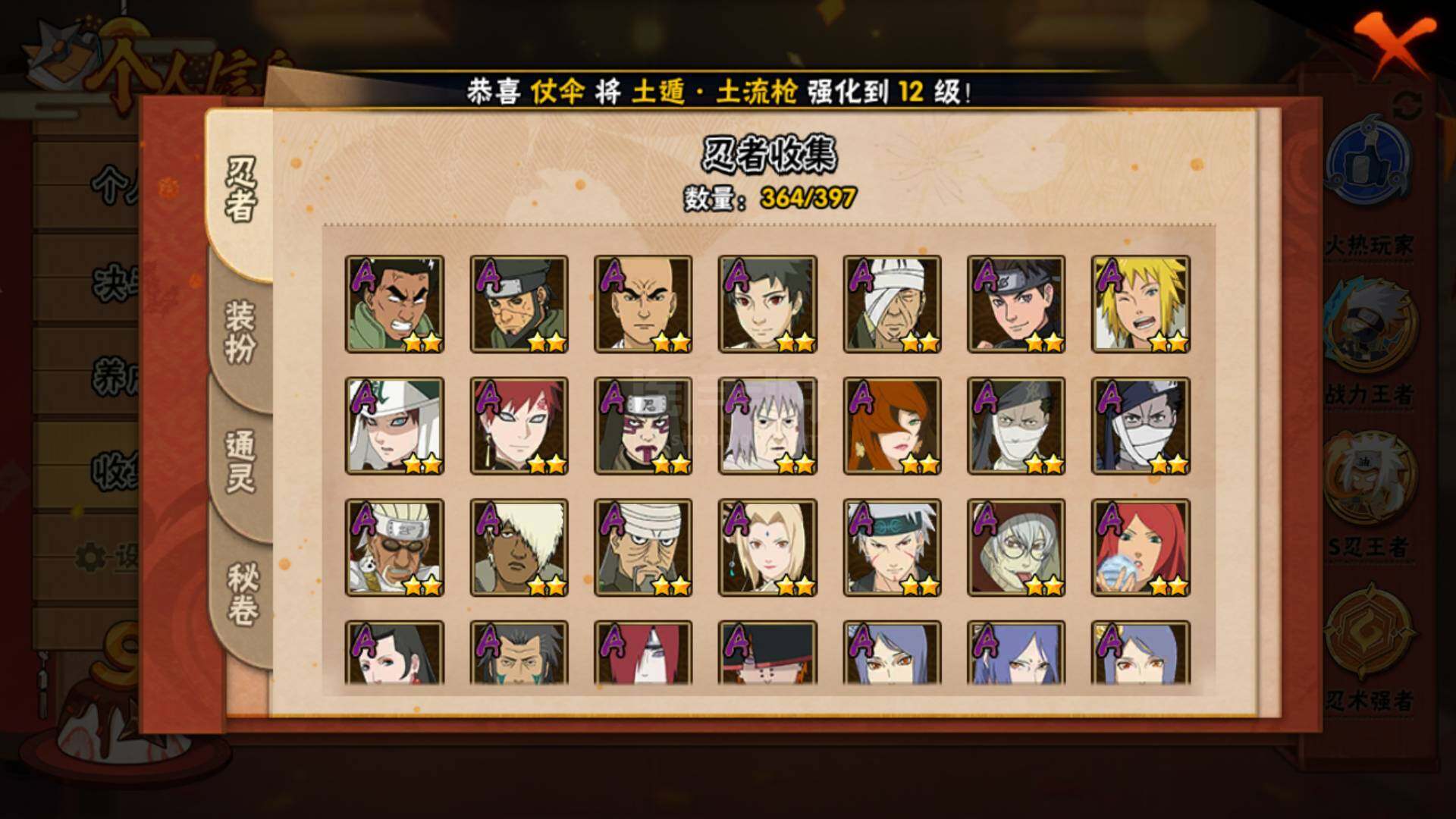V15/2854w战力/总忍者364/48S/84A/19个直购A忍/白面具/