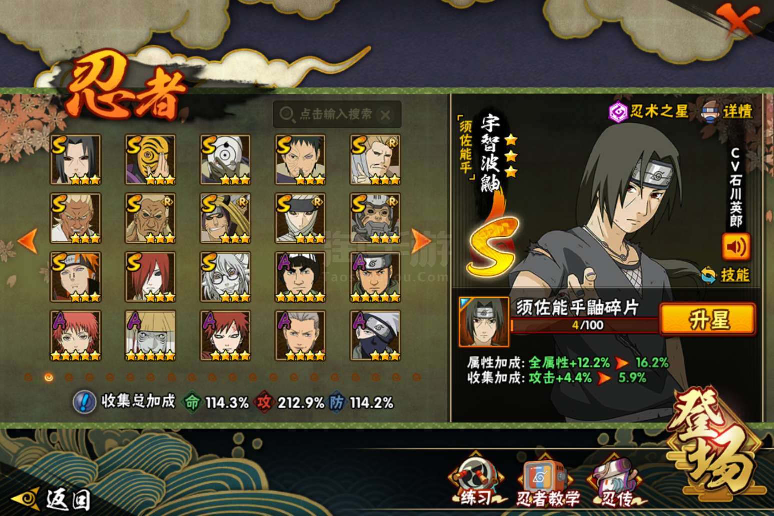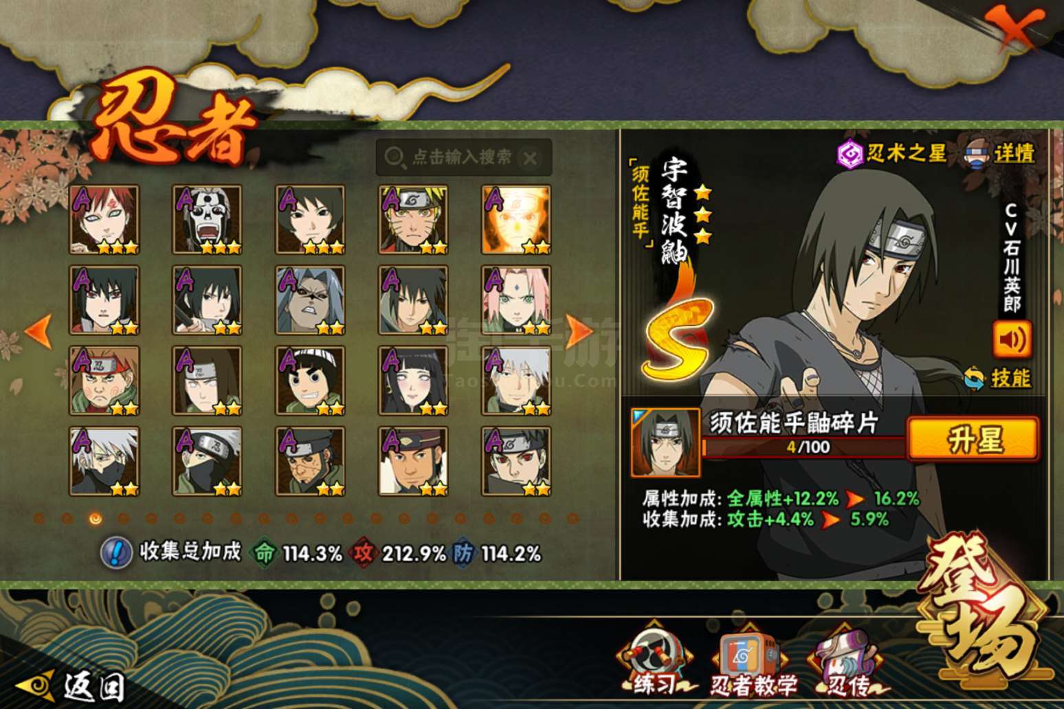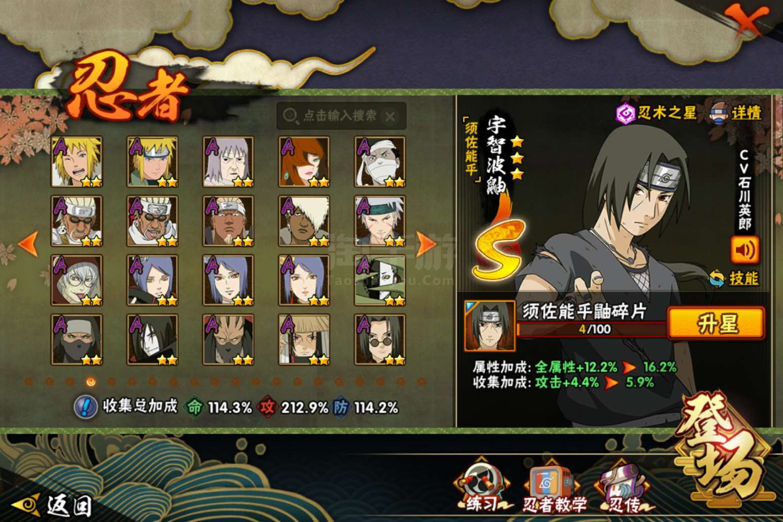 火影忍者【安卓QQ】贵14有很多氪金忍者和98通灵,328忍者也有,有两张绝版奥义图佐助和鸣人的