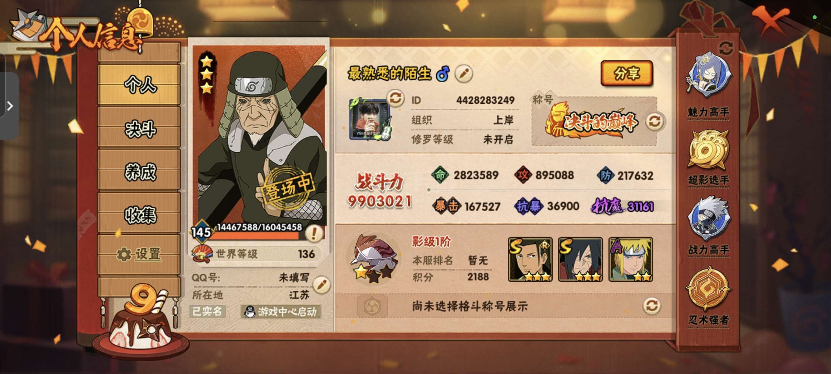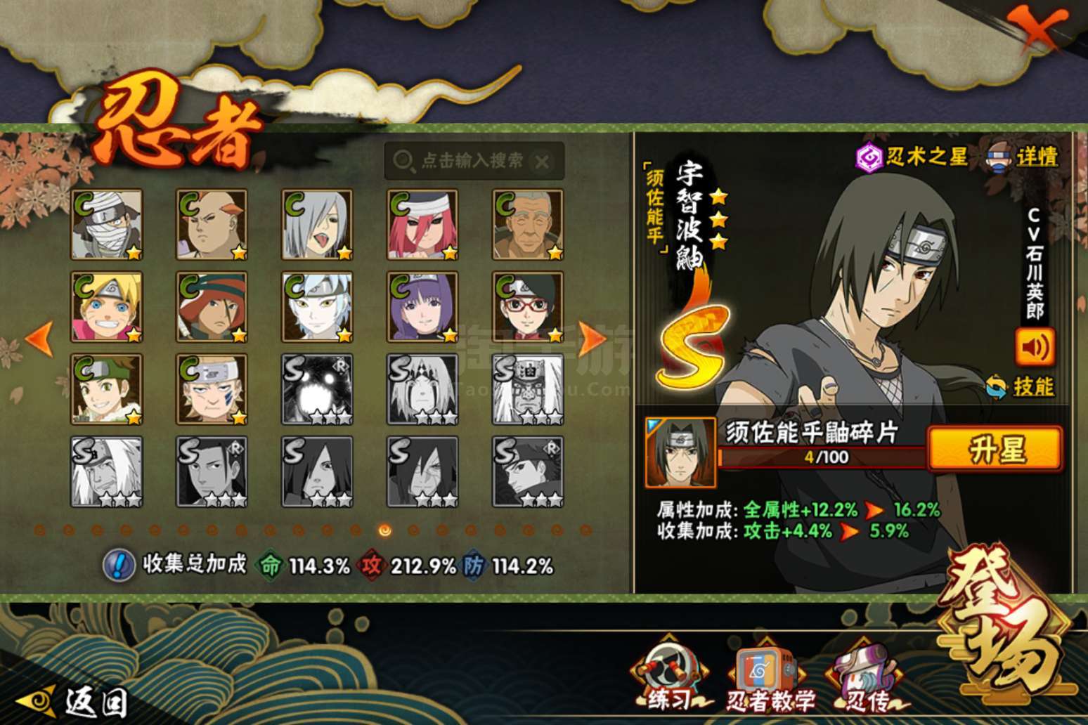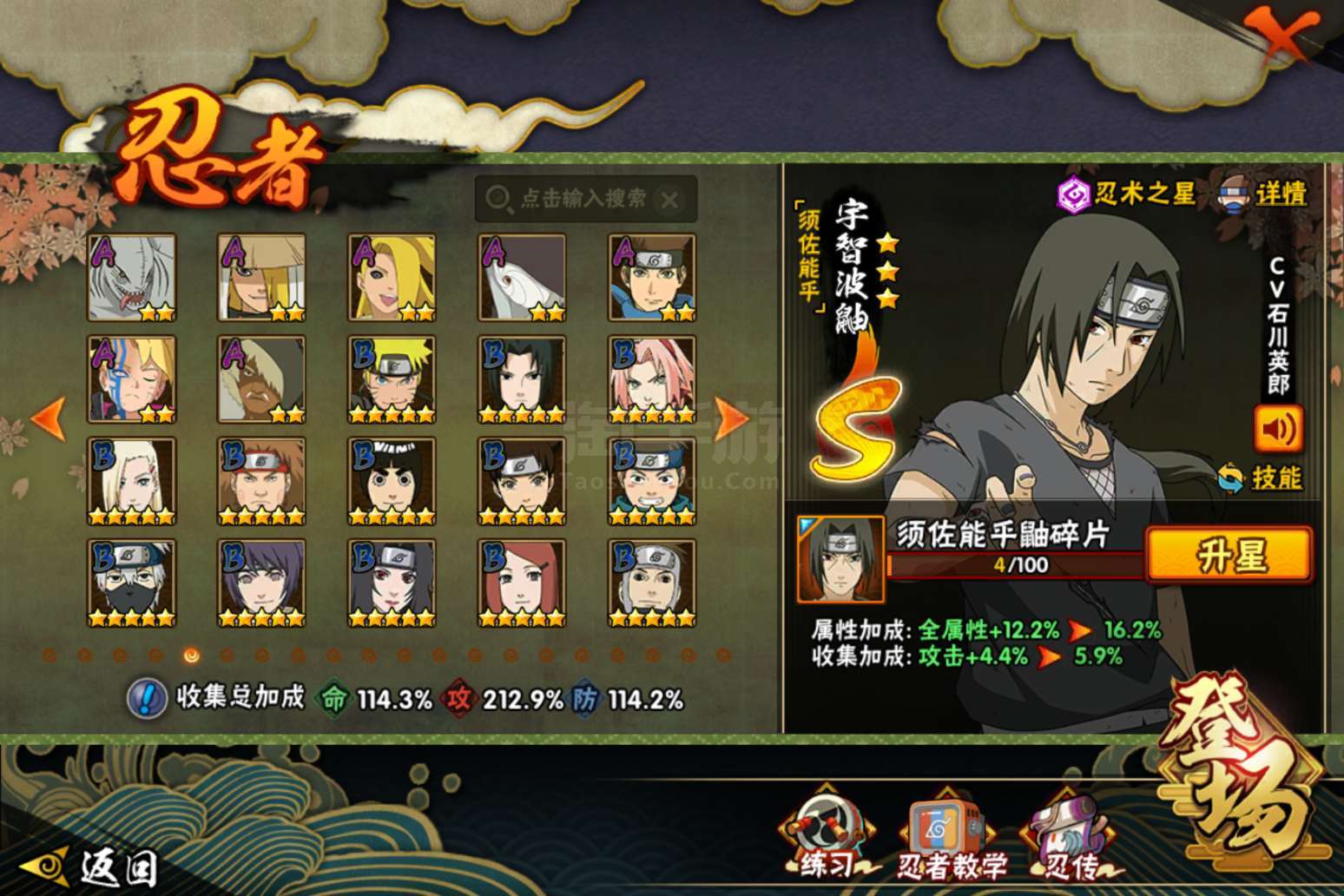 火影忍者【安卓QQ】贵14有很多氪金忍者和98通灵,328忍者也有,有两张绝版奥义图佐助和鸣人的
