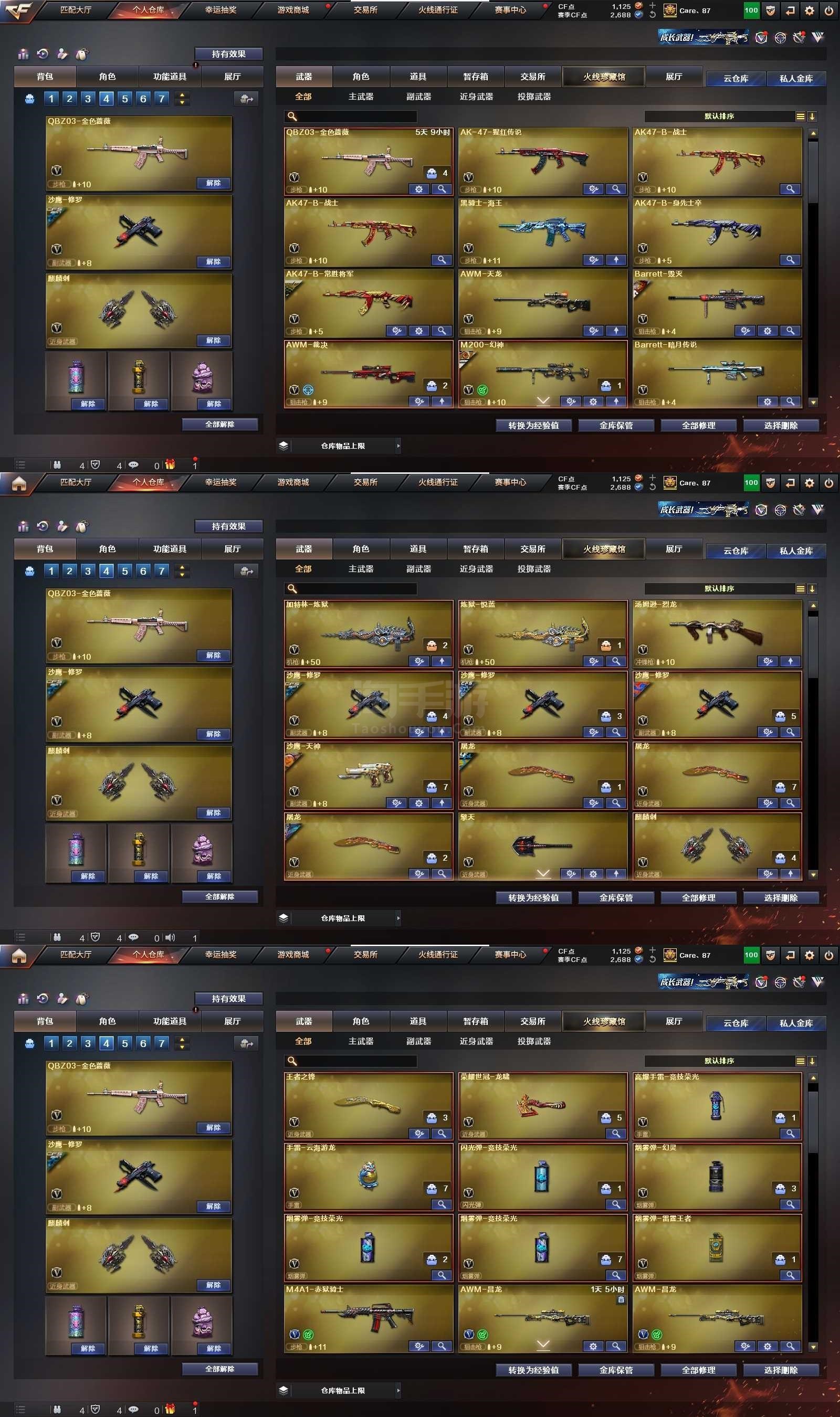 2012536_广东/南部/包实名/45V5王者4炫金VIP6【主武器类型】 M200-幻神 (AG-CFPLS24冠军+Heartshot女团) HK417-朱雀 Barrett-毁灭 AWM-裁决 M4A1-雷神 *3 M4A1-黑龙 M4A1-黑骑士 M4A1-龙血 AK47-火麒麟 AK47-无影 AK47-黑鲨 AK12-天启 汤姆逊-烈龙 炼狱悦蓝觉醒版 加特林-炼狱 AWM-天龙 炫