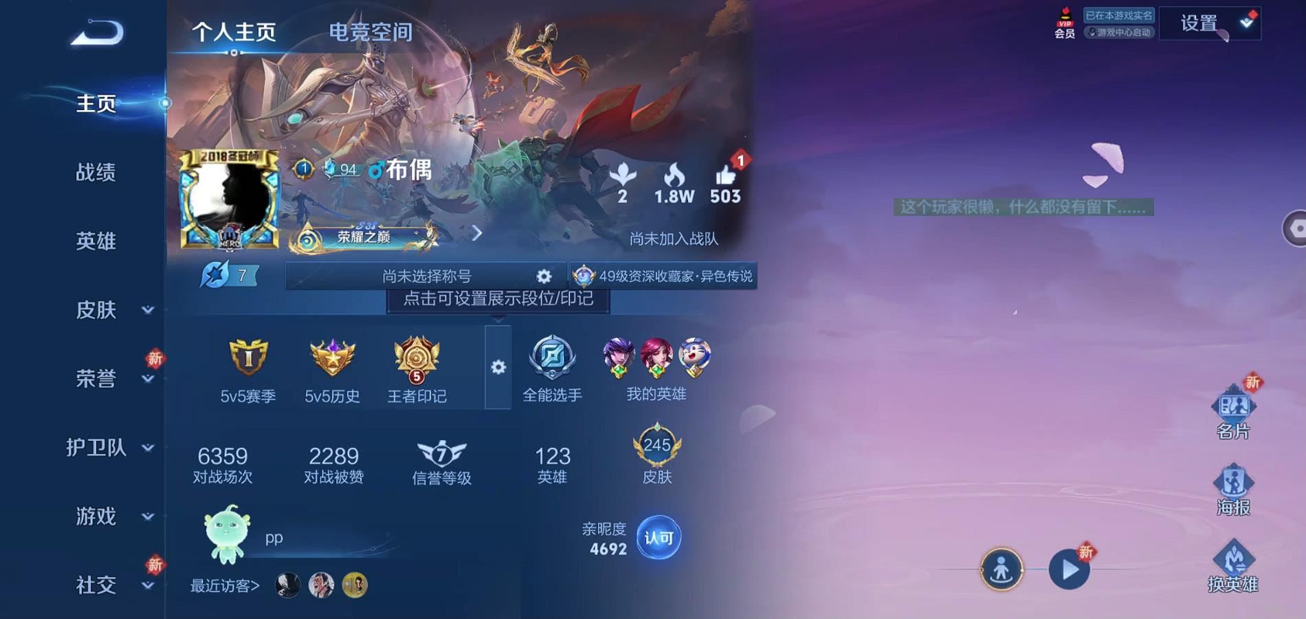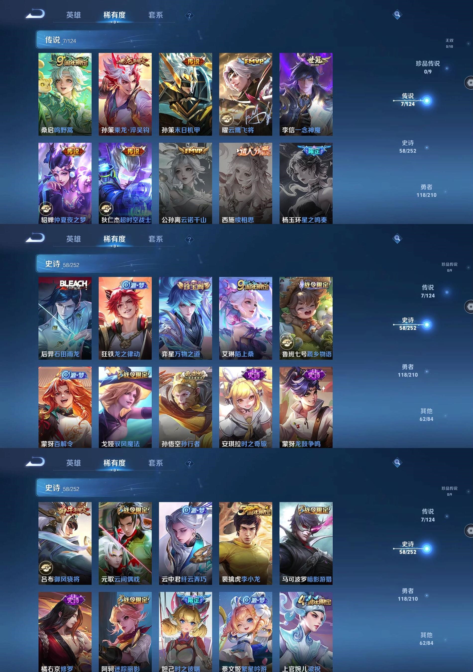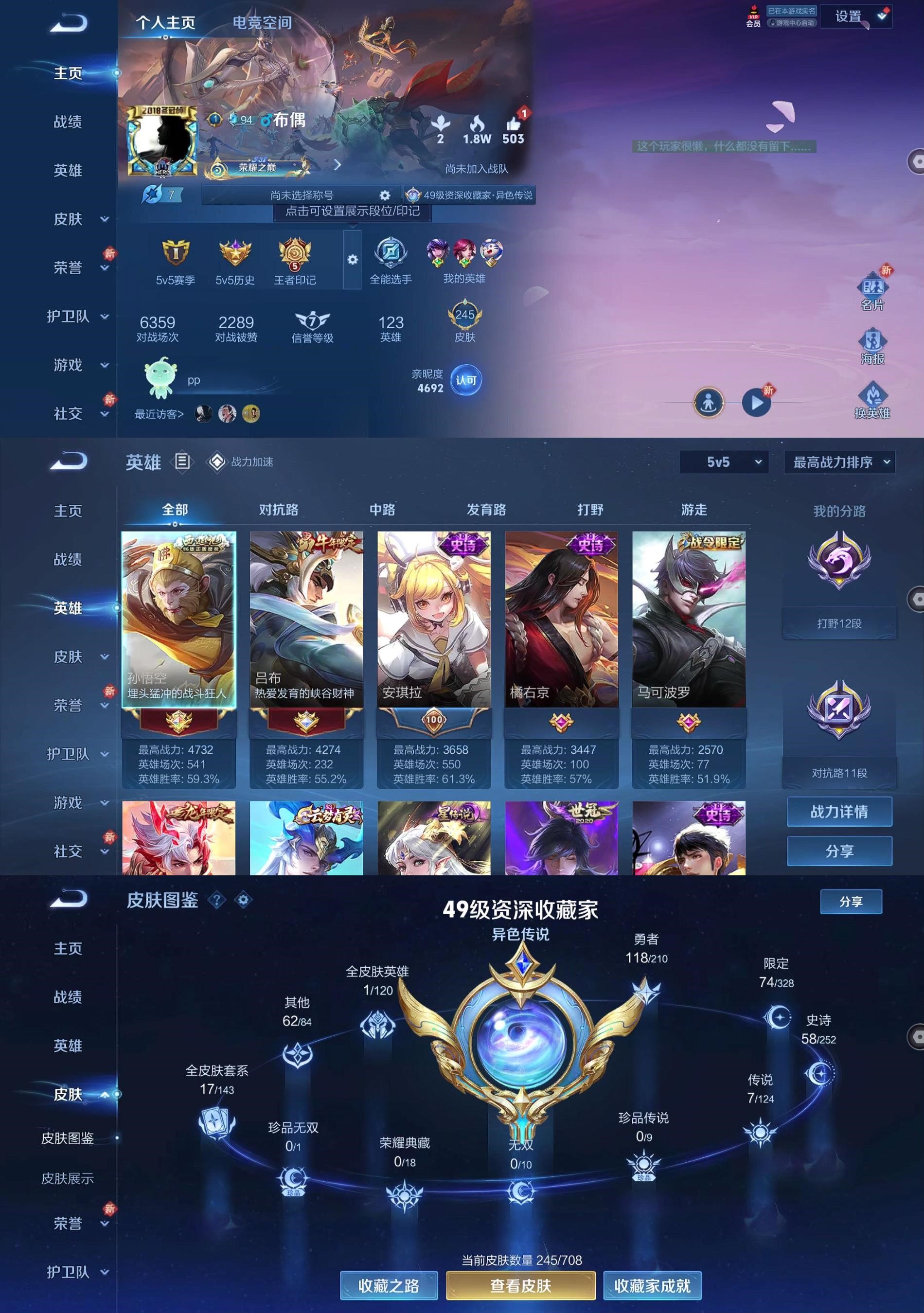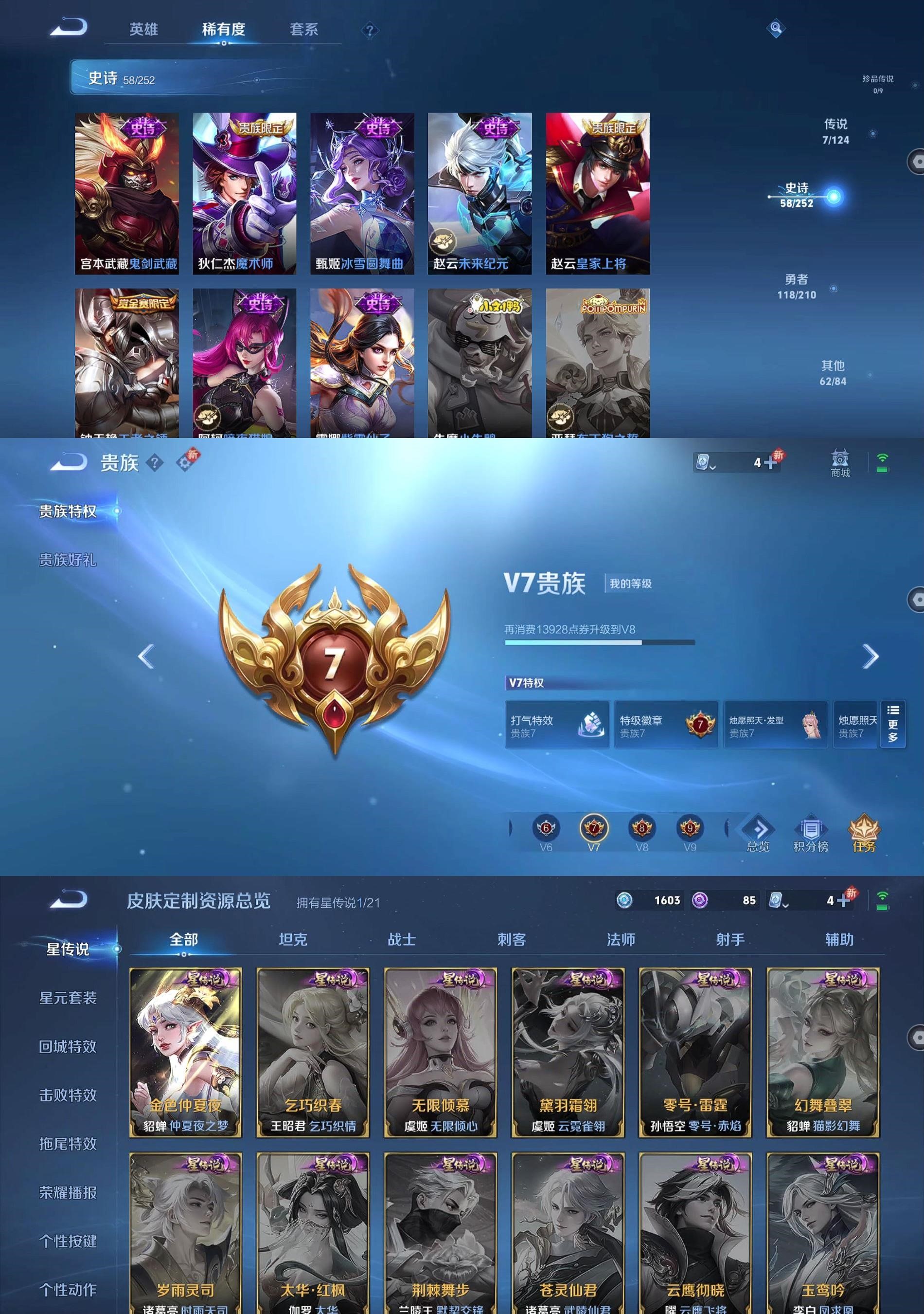 [王者荣耀]V77传说58史诗245皮肤122英雄至尊星耀I