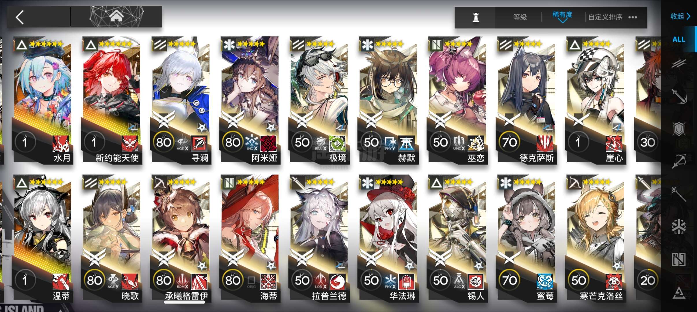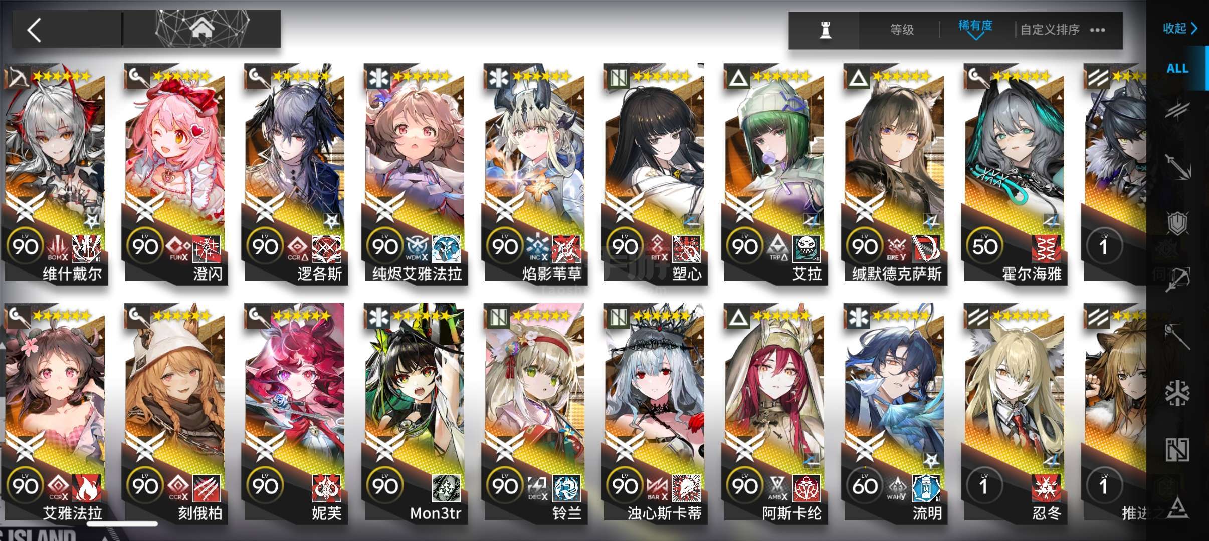 明日方舟【安卓官方】满潜维什戴尔,满潜logos,主流强力干员都有,但是好多都没有练。喜欢养成的可以接手一下。