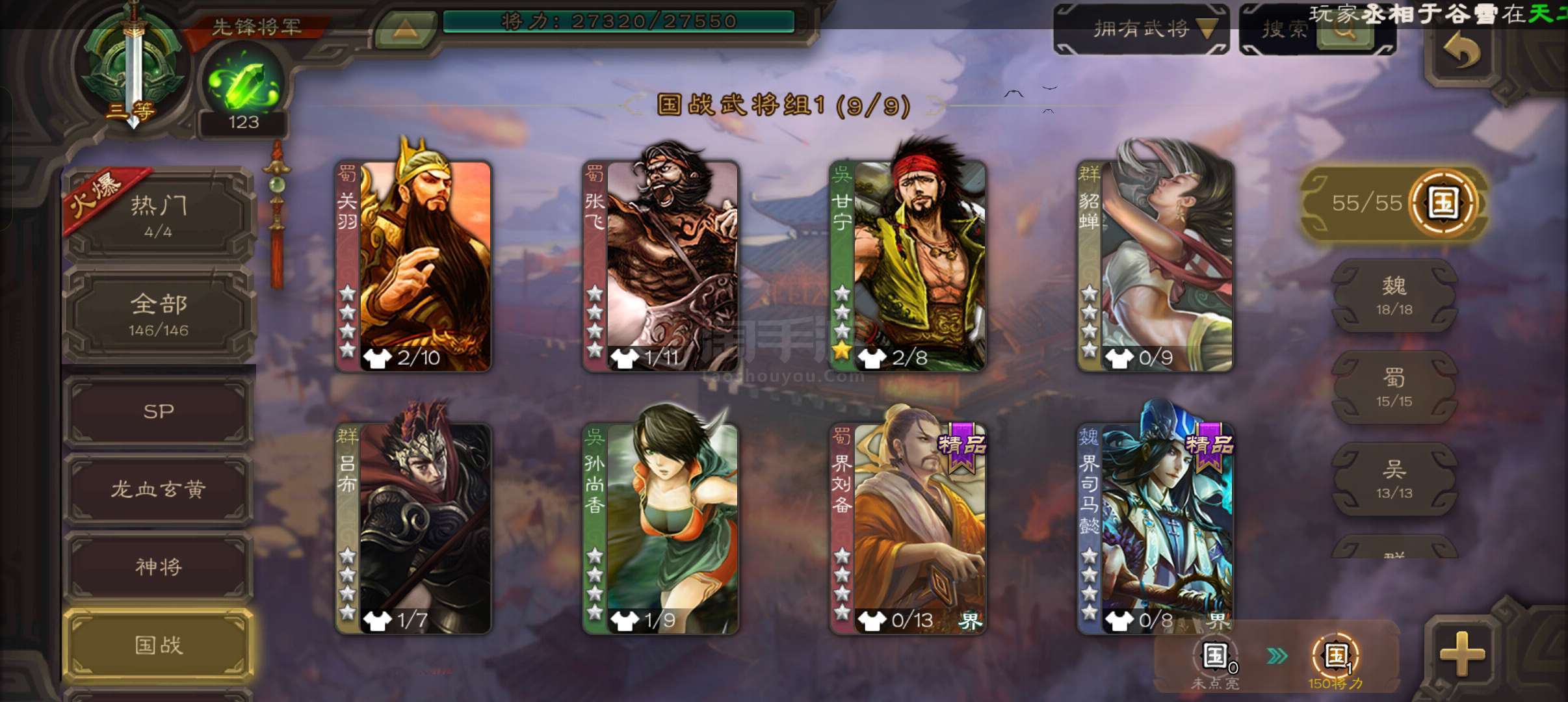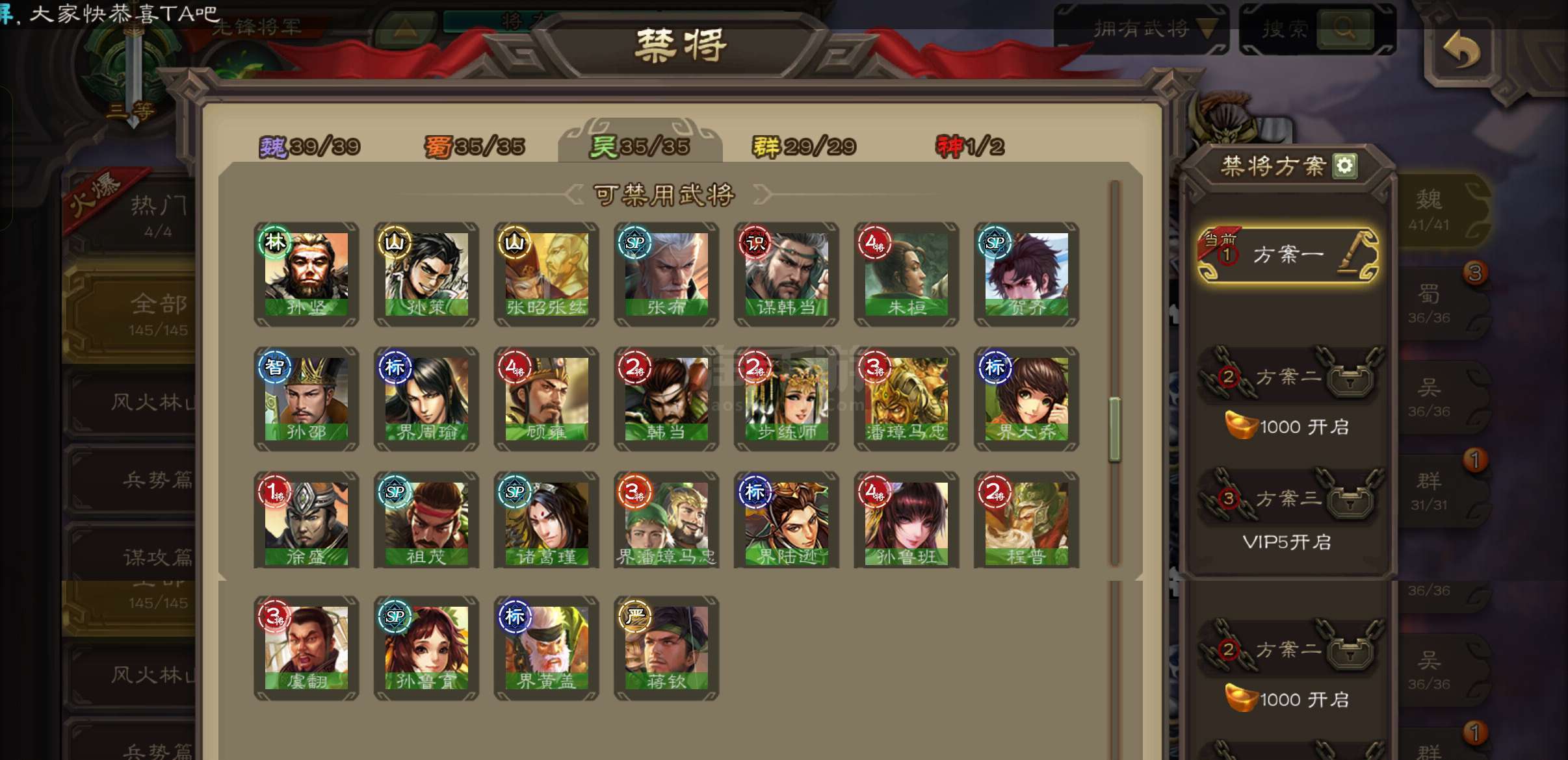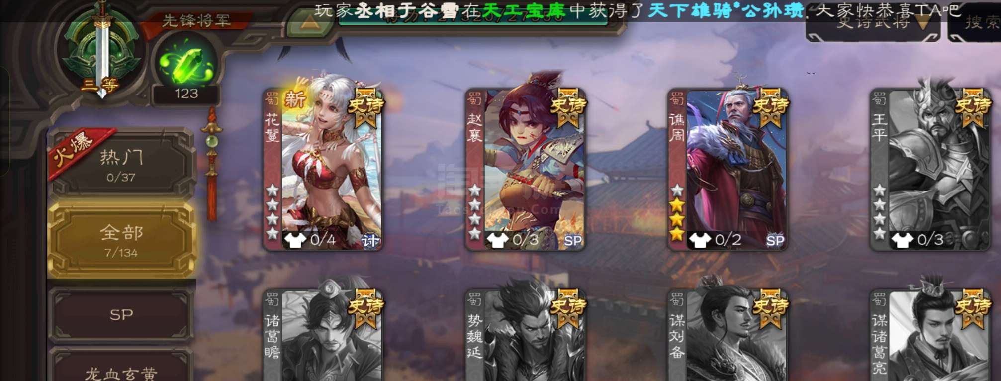 4.3万羽毛,回廊动白马神吕布神刘备花鬘谯周贺齐6史诗先锋,动态界陆逊谋韩当谋陆逊孙邵崔琰145将