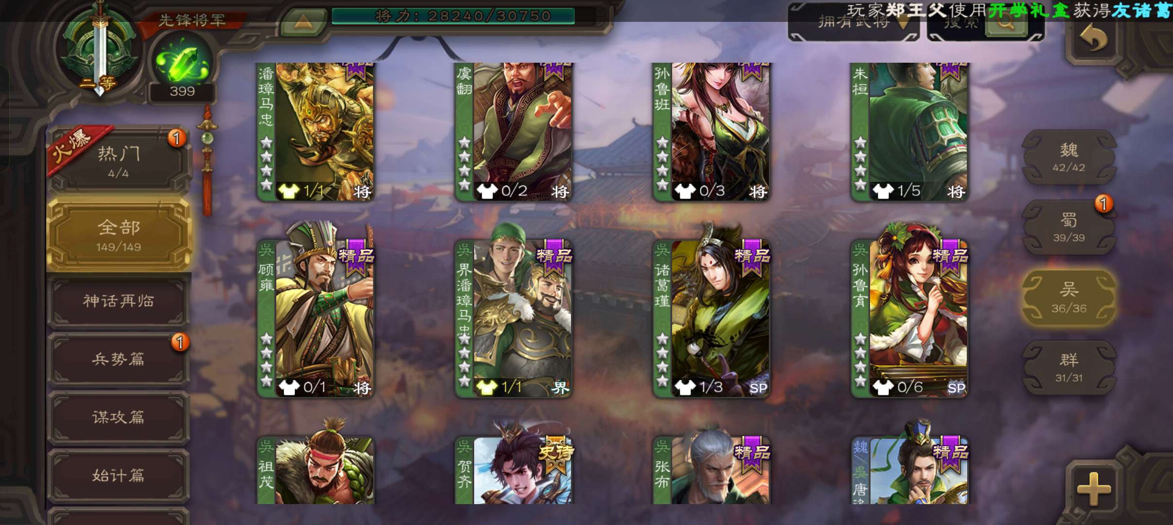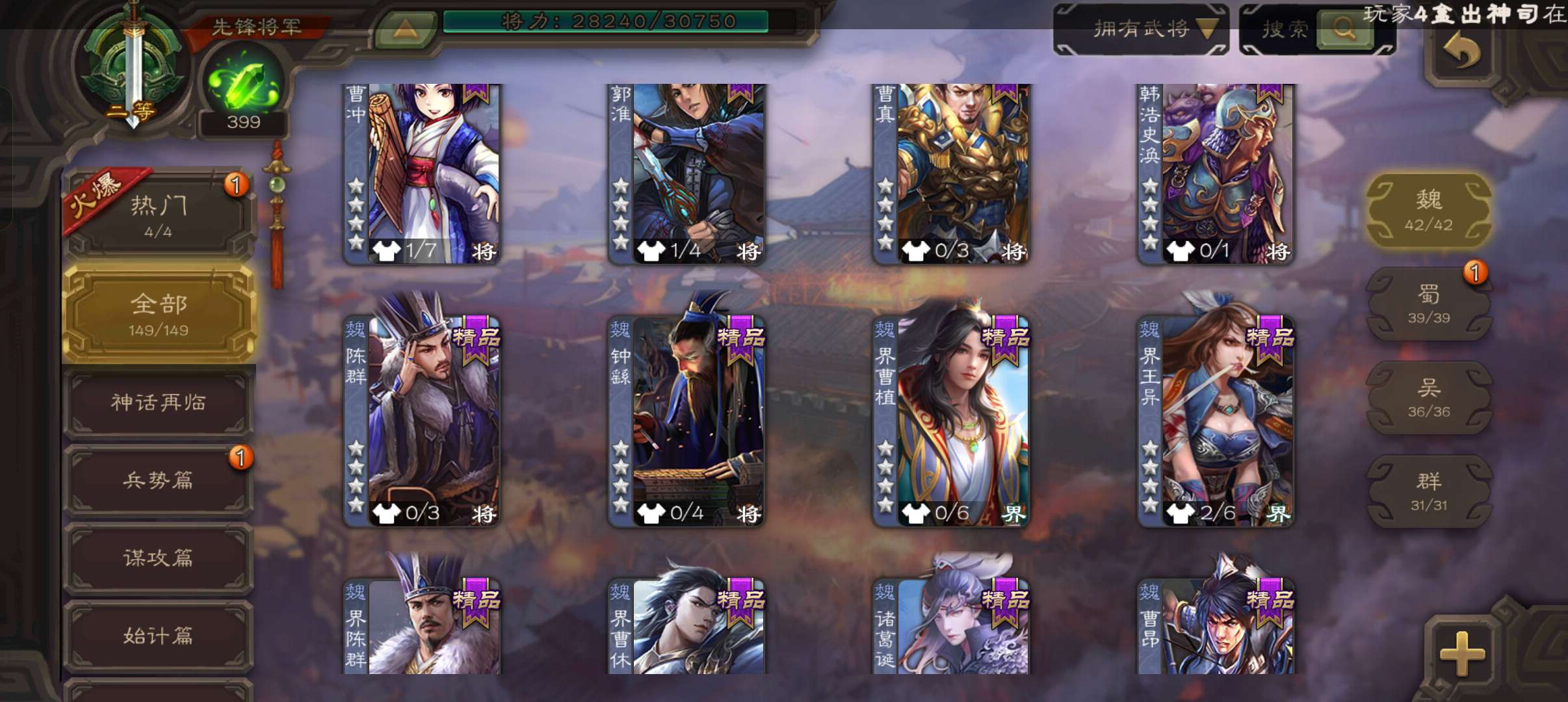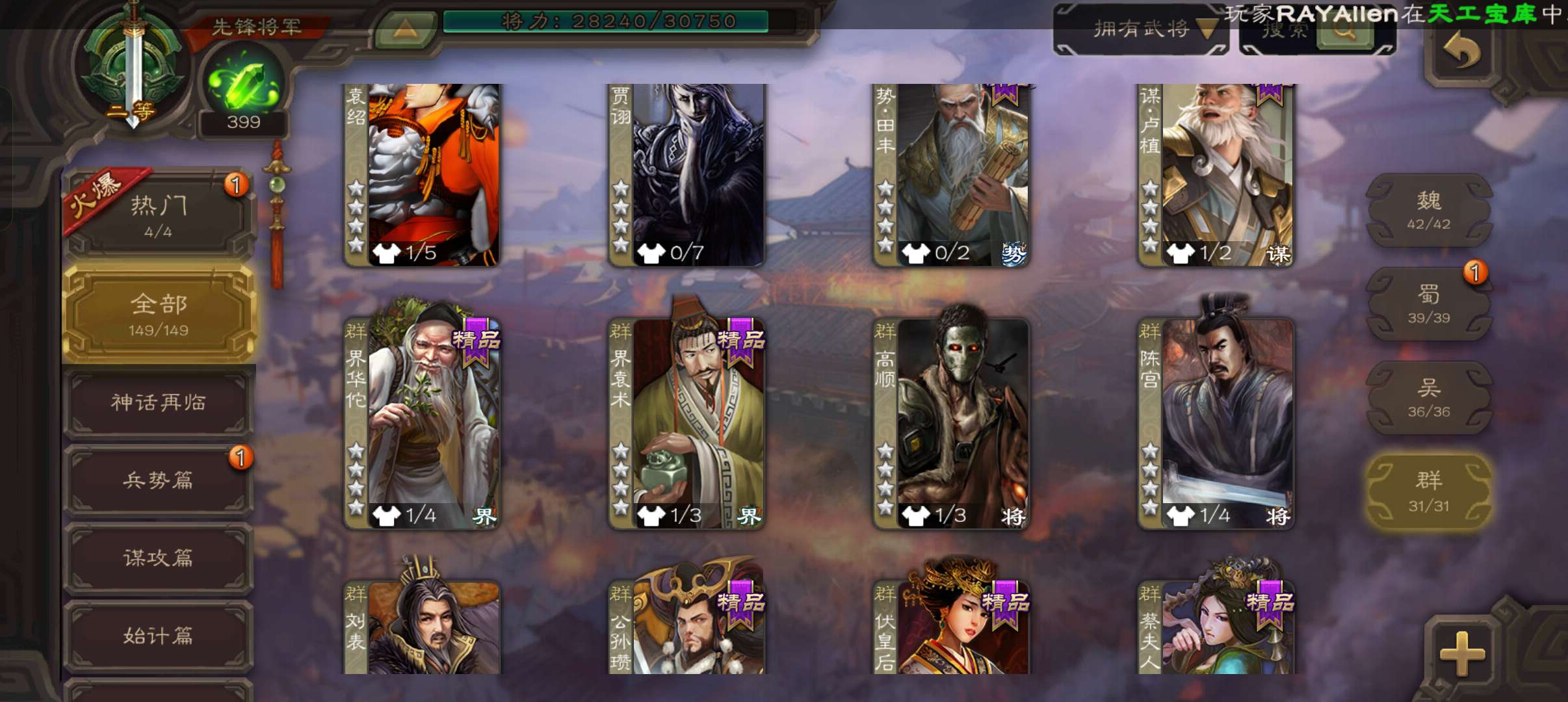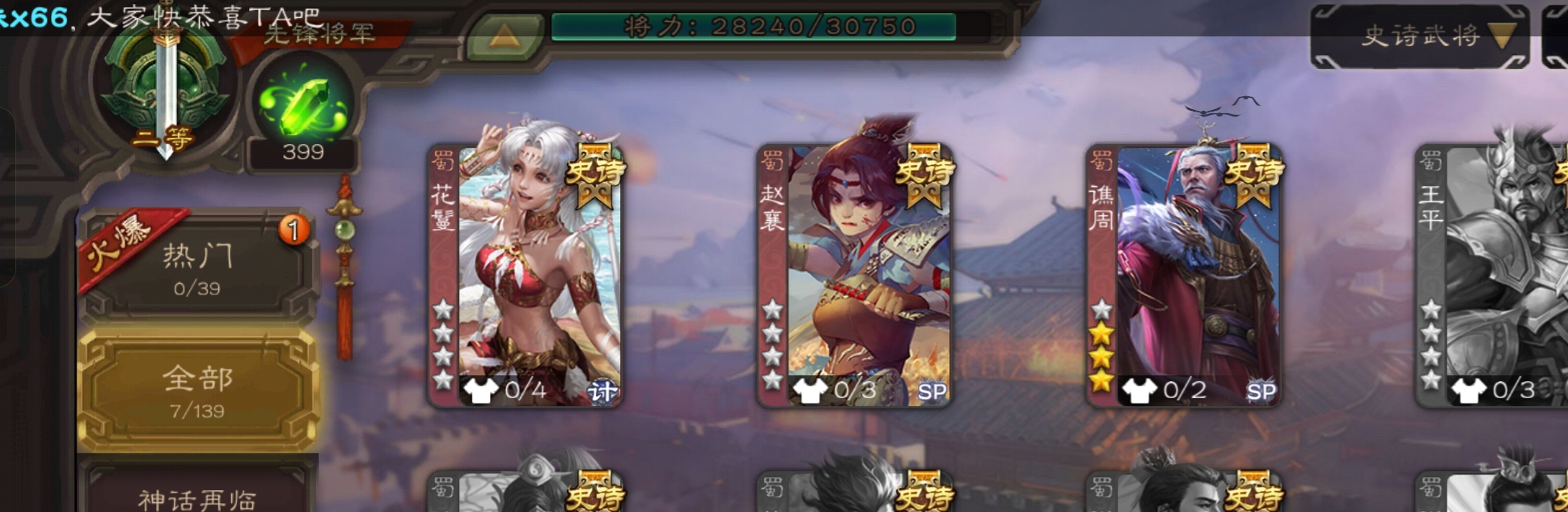 7史诗先锋,回廊动白马回廊动神吕布神刘备花鬘谯周赵襄贺齐,动态界陆逊谋韩当谋陆逊孙邵崔琰149将