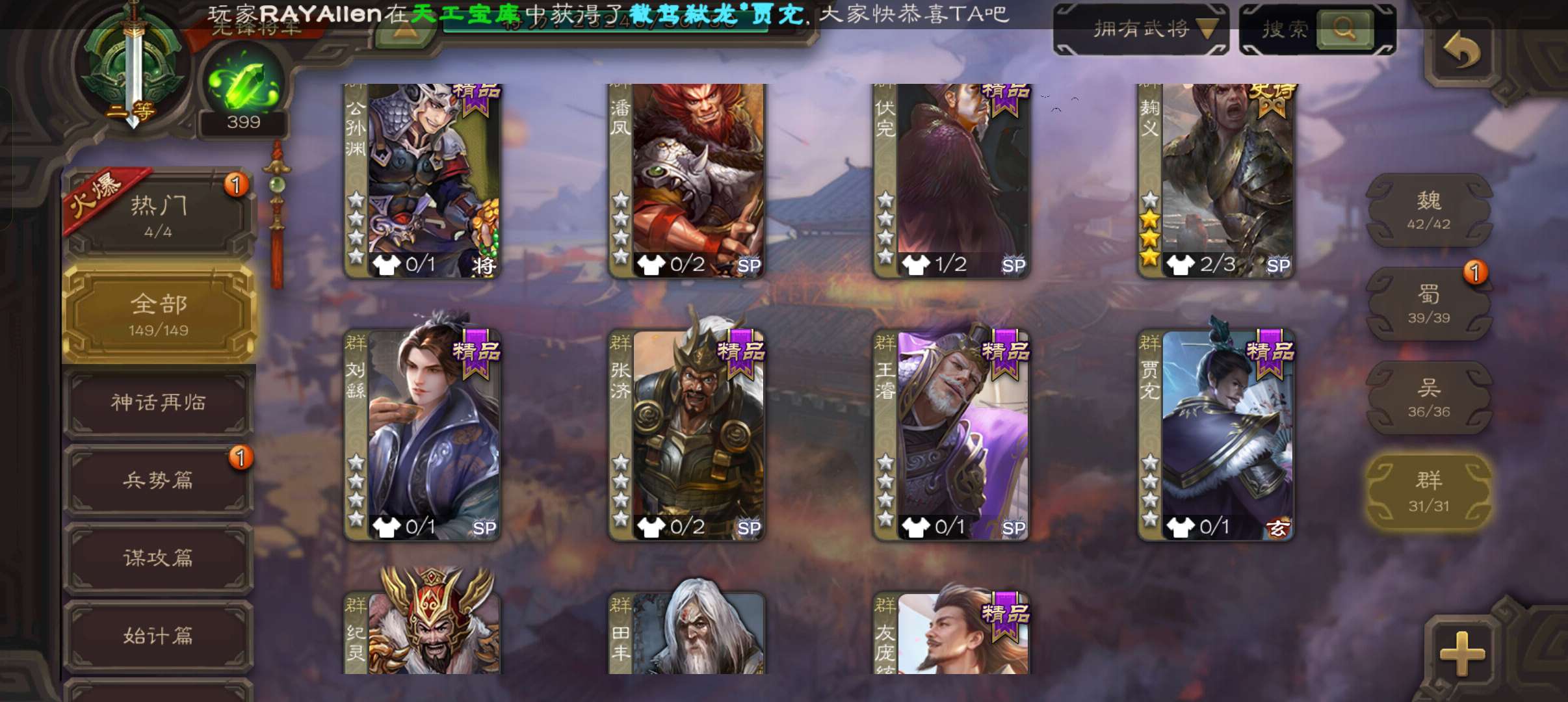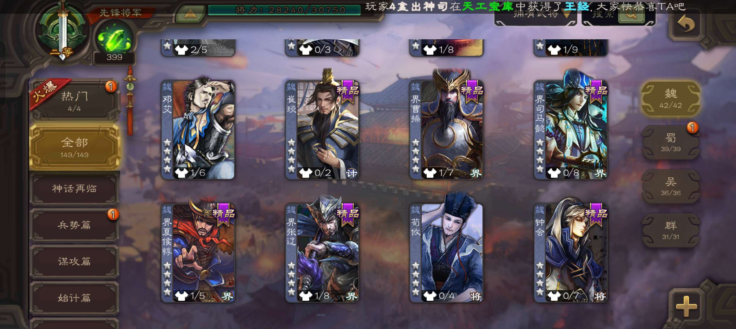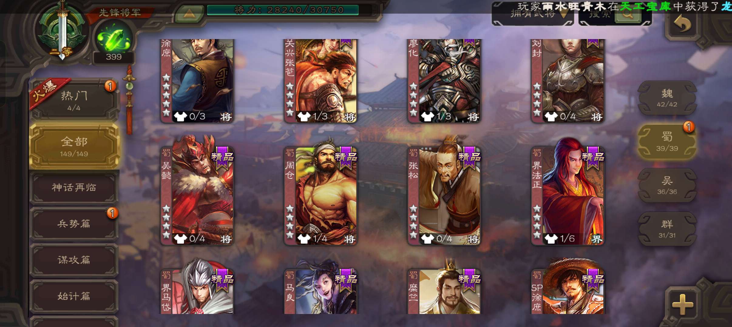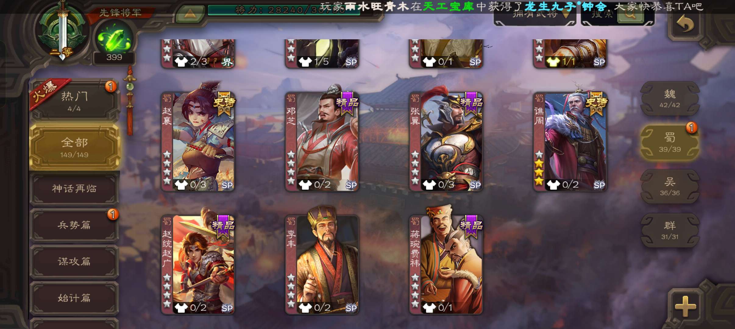 7史诗先锋,回廊动白马回廊动神吕布神刘备花鬘谯周赵襄贺齐,动态界陆逊谋韩当谋陆逊孙邵崔琰149将