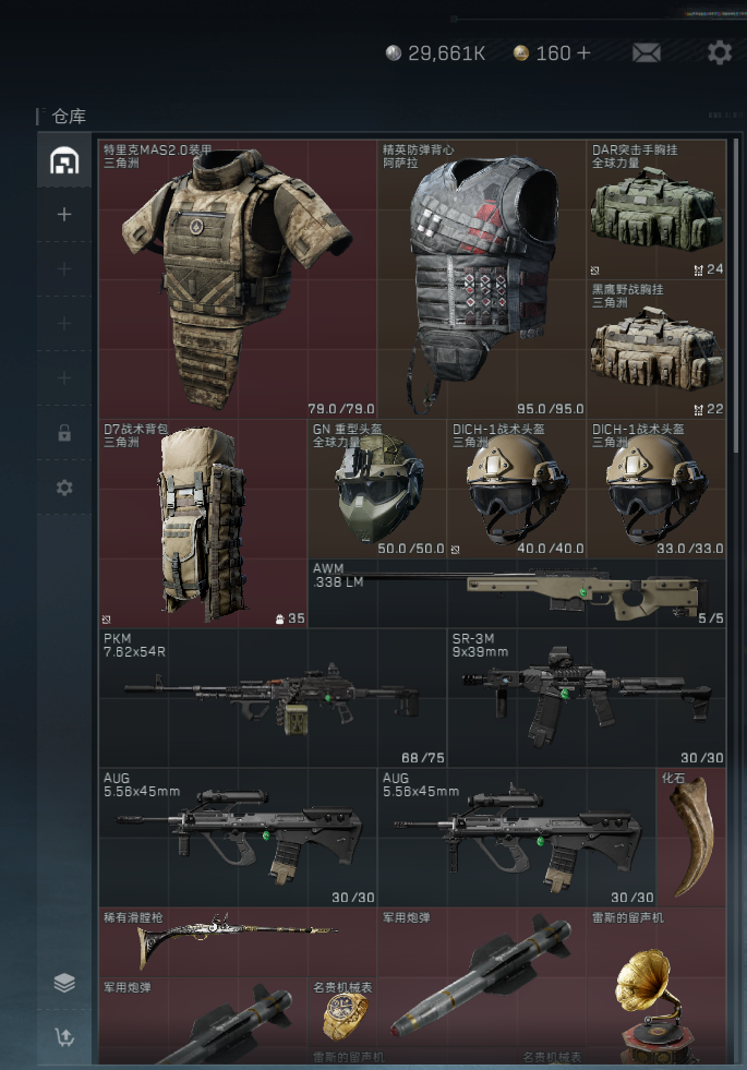 游戏类型:三角洲行动 仓库价值-61.6M 哈夫币:29661K