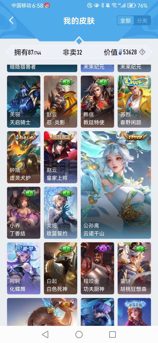 最强小号便宜卖有喜欢的可以来,有黄香蕉,公孙离FMVP,新买的战令