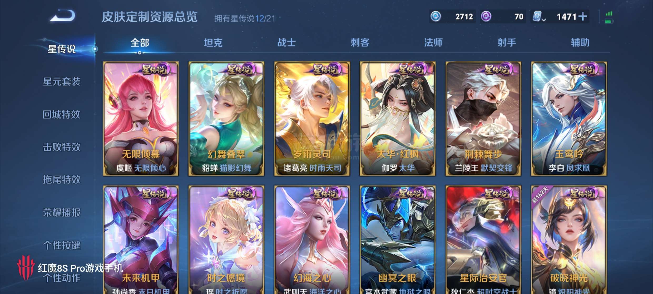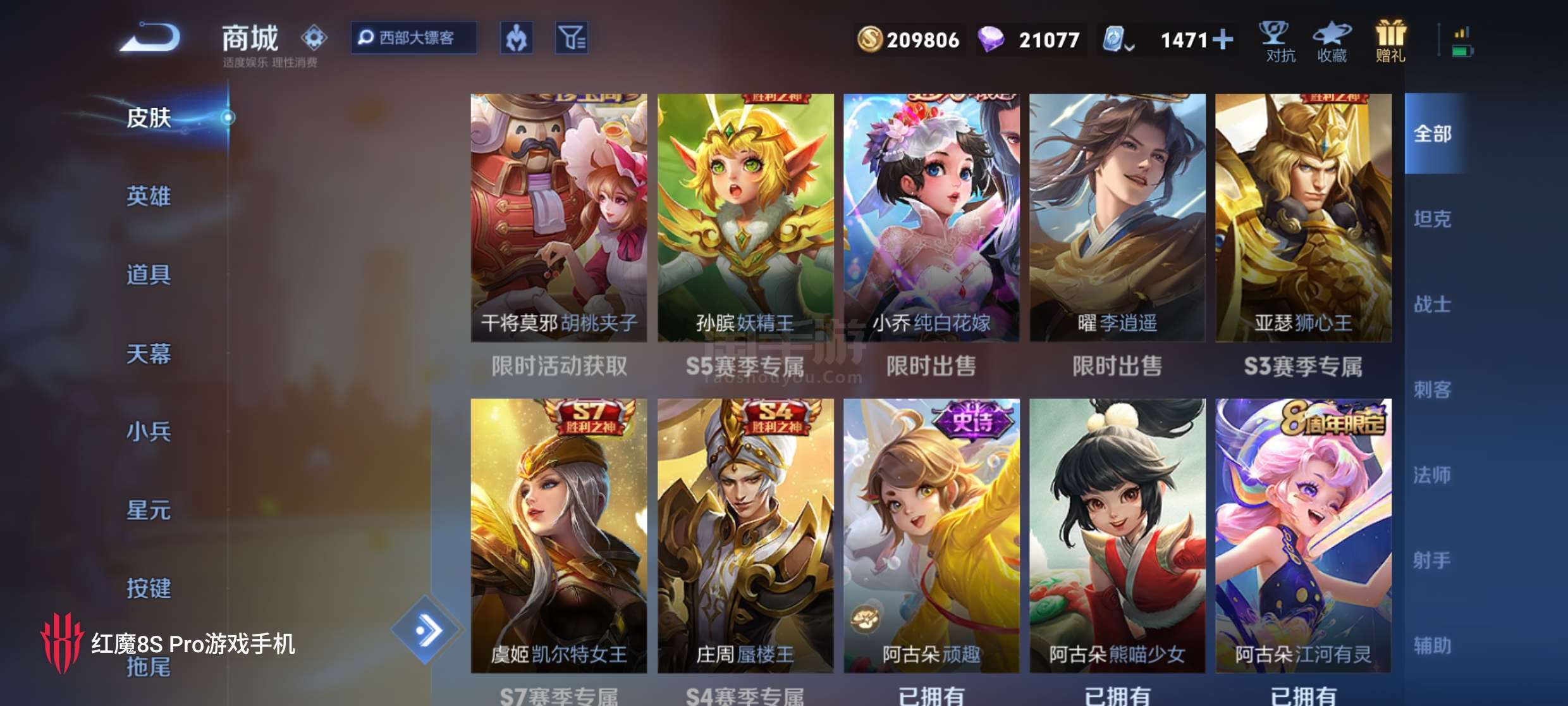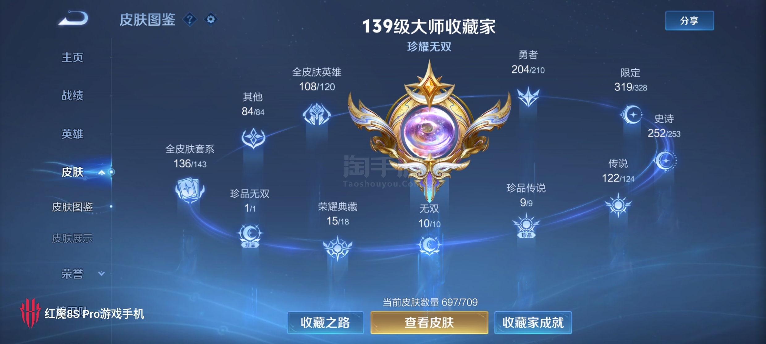 安卓QQ 无双V10,697皮肤新皮肤都买了,17水晶10无双9珍品1无双珍品,一千多点券等等