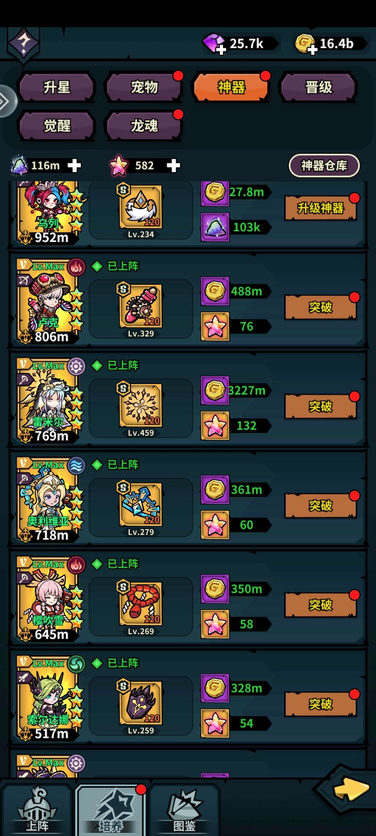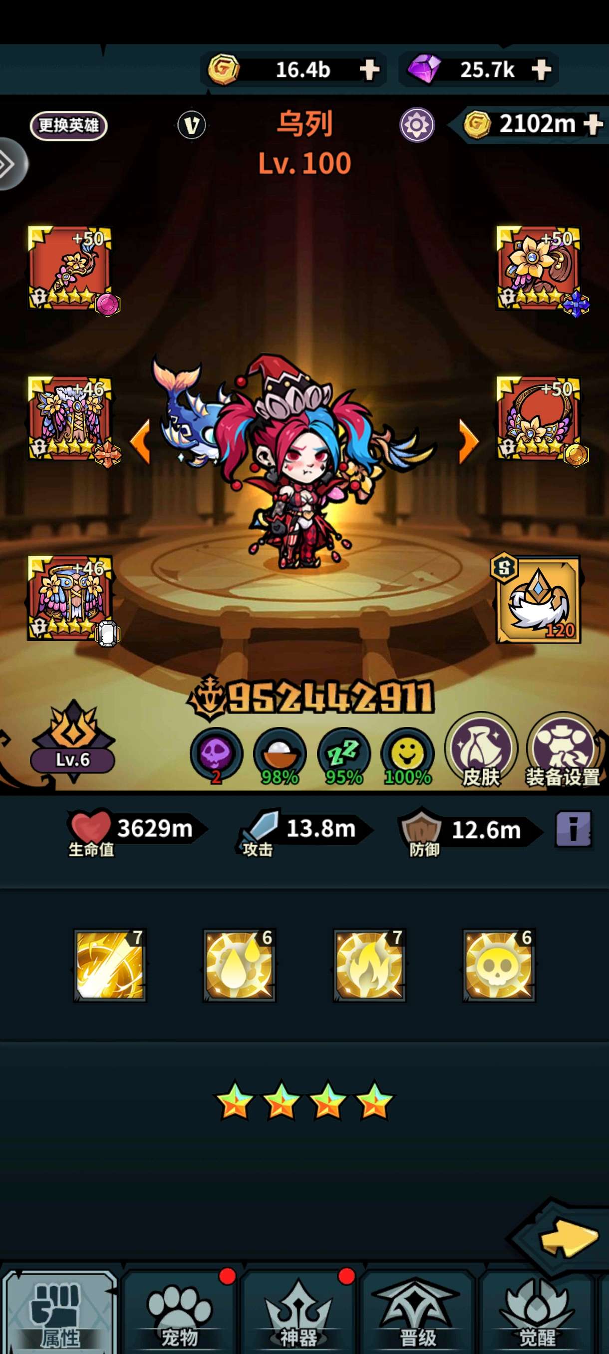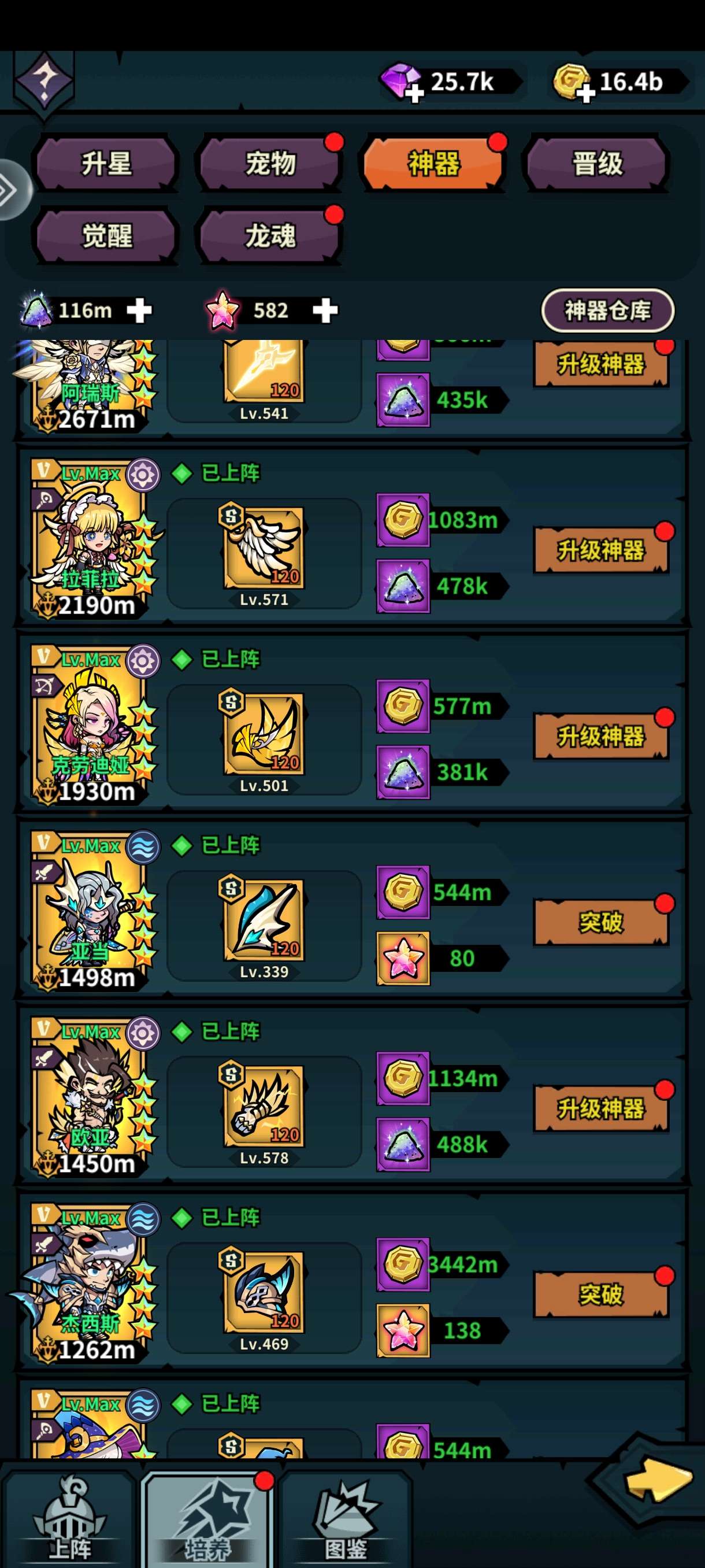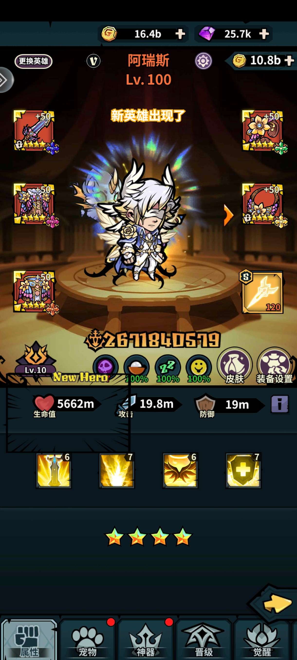 7光全满星,18.1B,远征45层,神兽360。所有主英雄都有套装,全部有专属神器,大概花了20万
