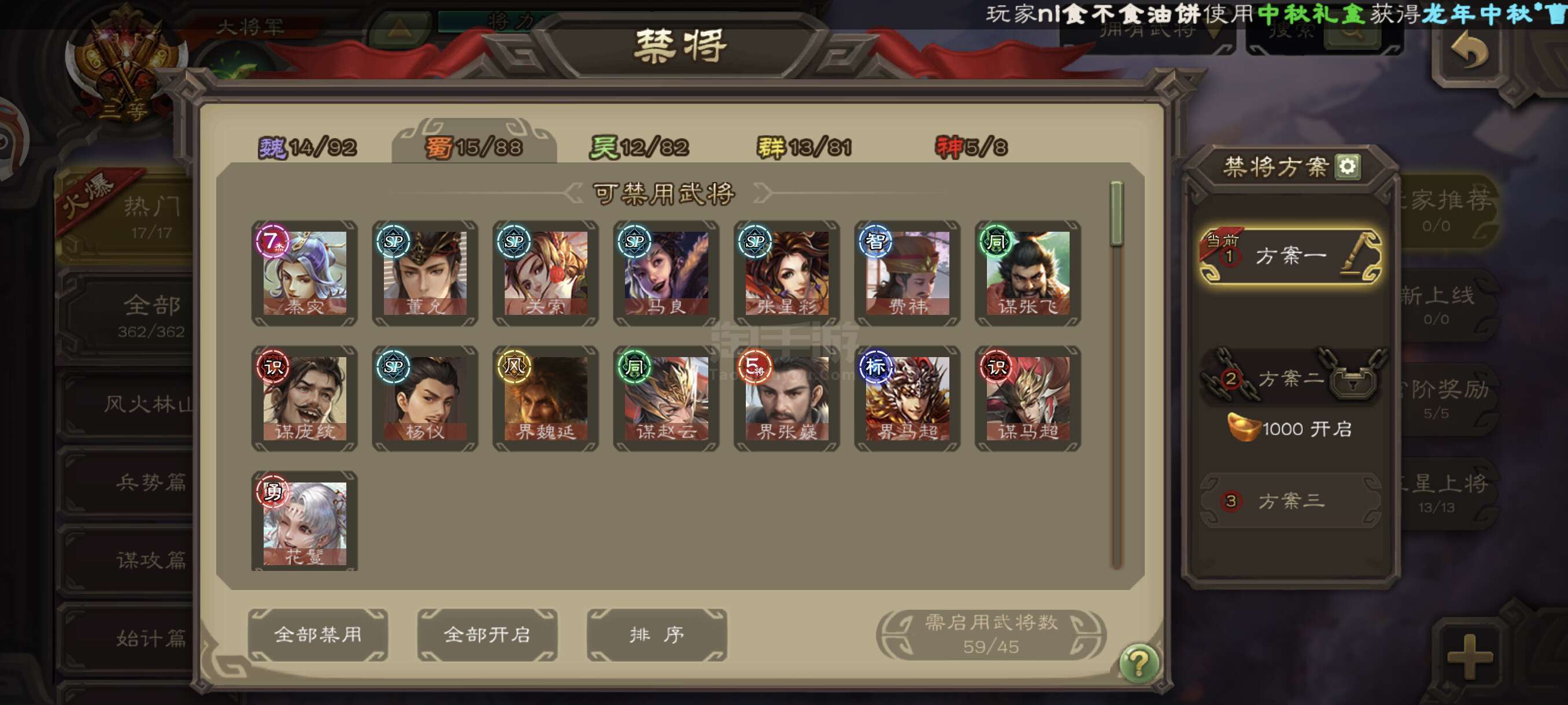 有十常侍 杜预 戏子 谋曹丕 马钧 大宝武将动皮 大宝 神赵云等多武将 大将军位置 价格可谈