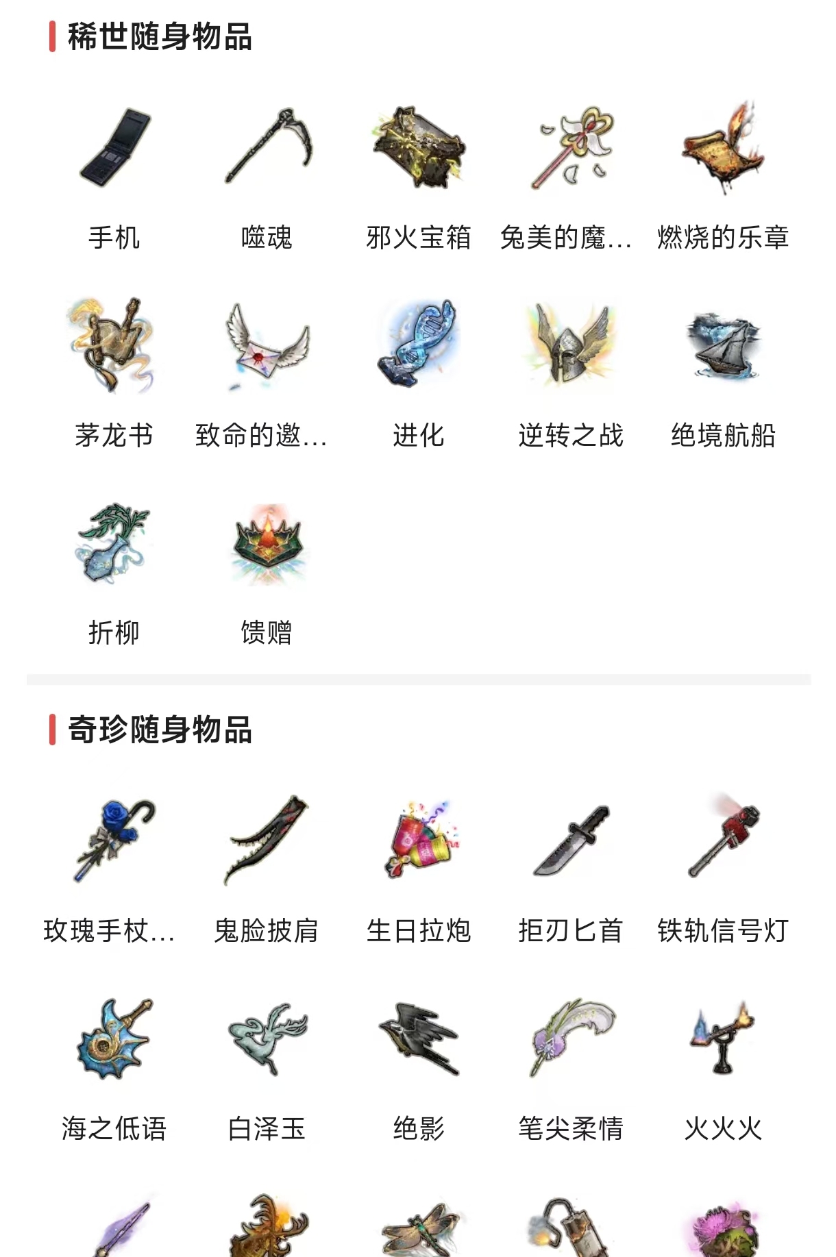 随身物品: