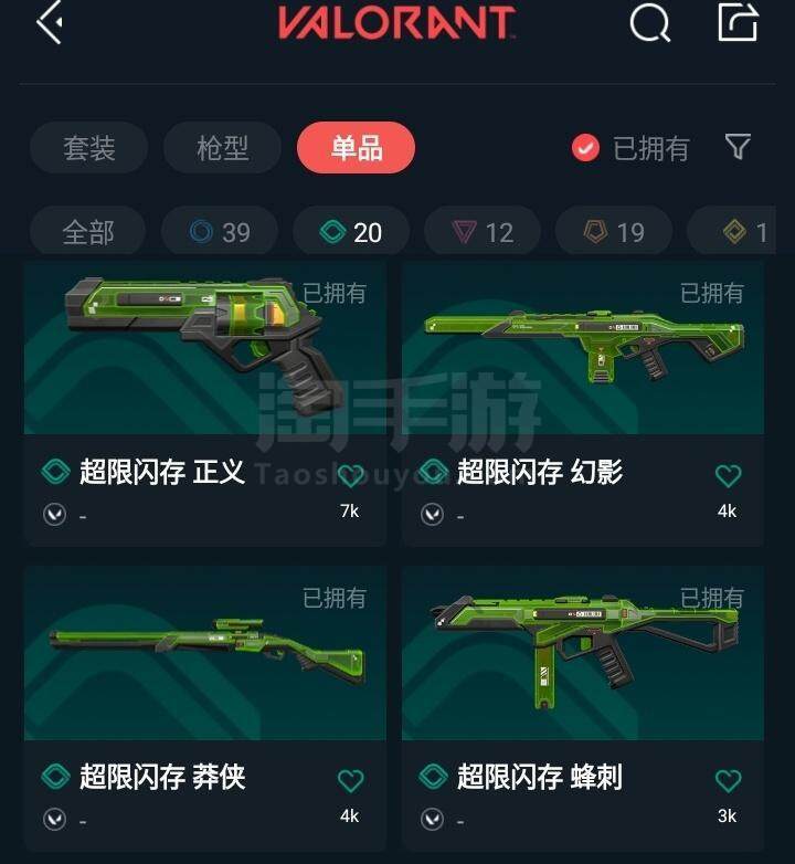 无畏契约【端游】近战武器皮肤: 匕首-超限闪存,影刃,鬼丸国纲 步枪皮肤: 幻影-侦察力量,幻