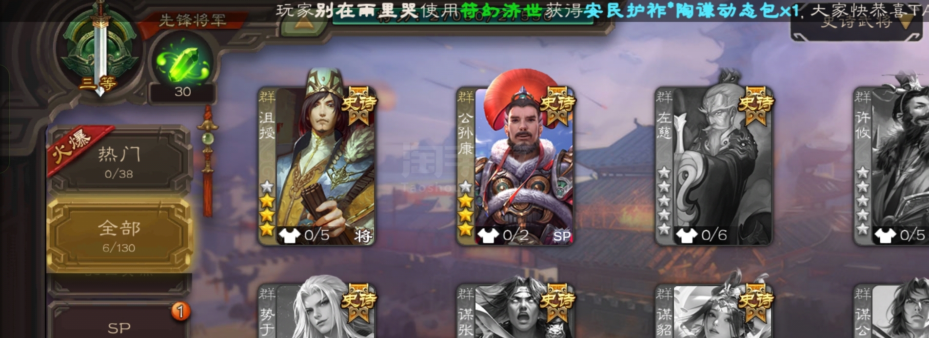 史诗武将数量: