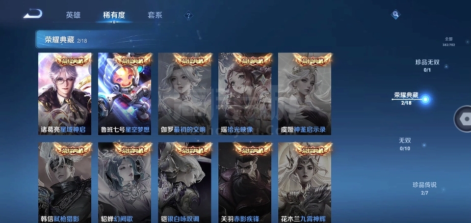 安卓QQ V9 2 典藏 35 传说 2 珍品传说 111 史诗 382 皮肤 不可二次
