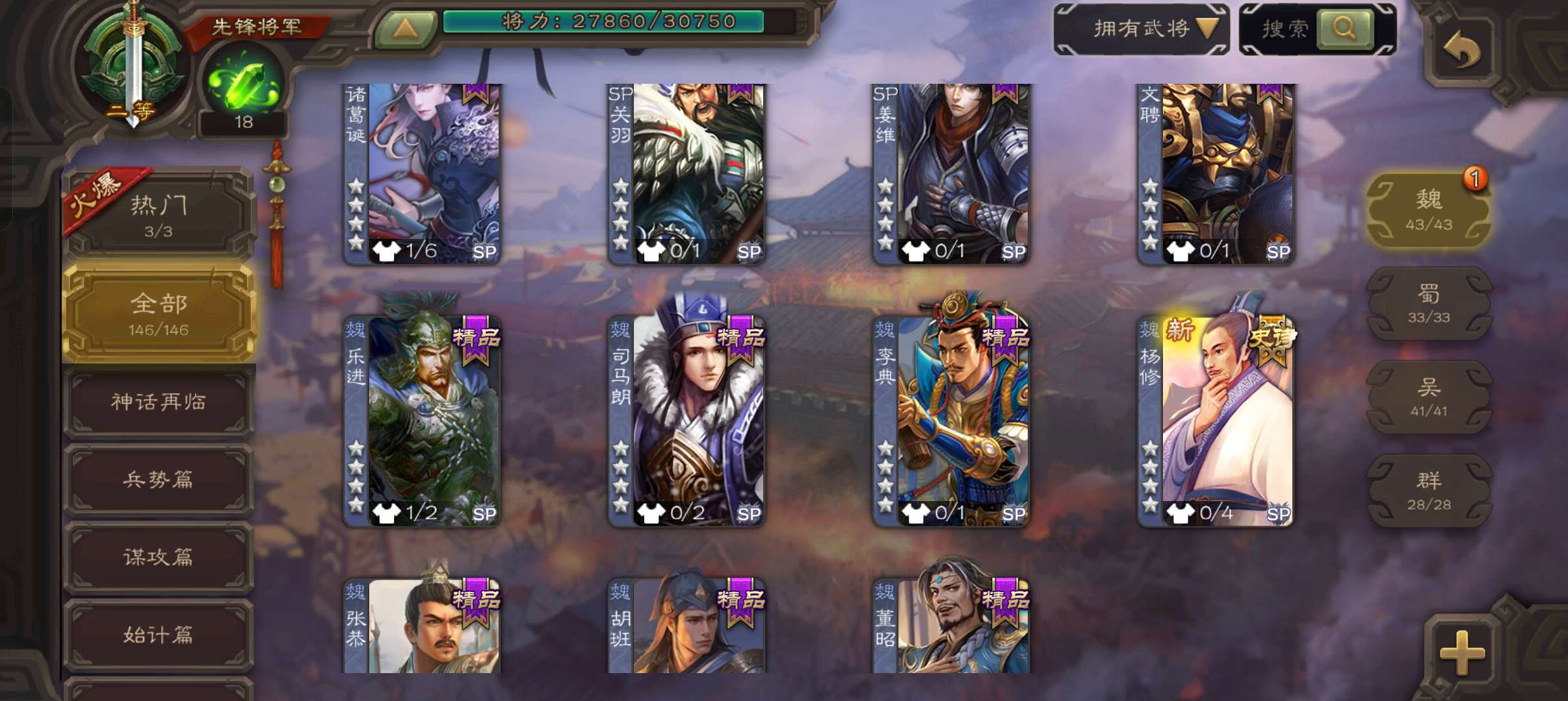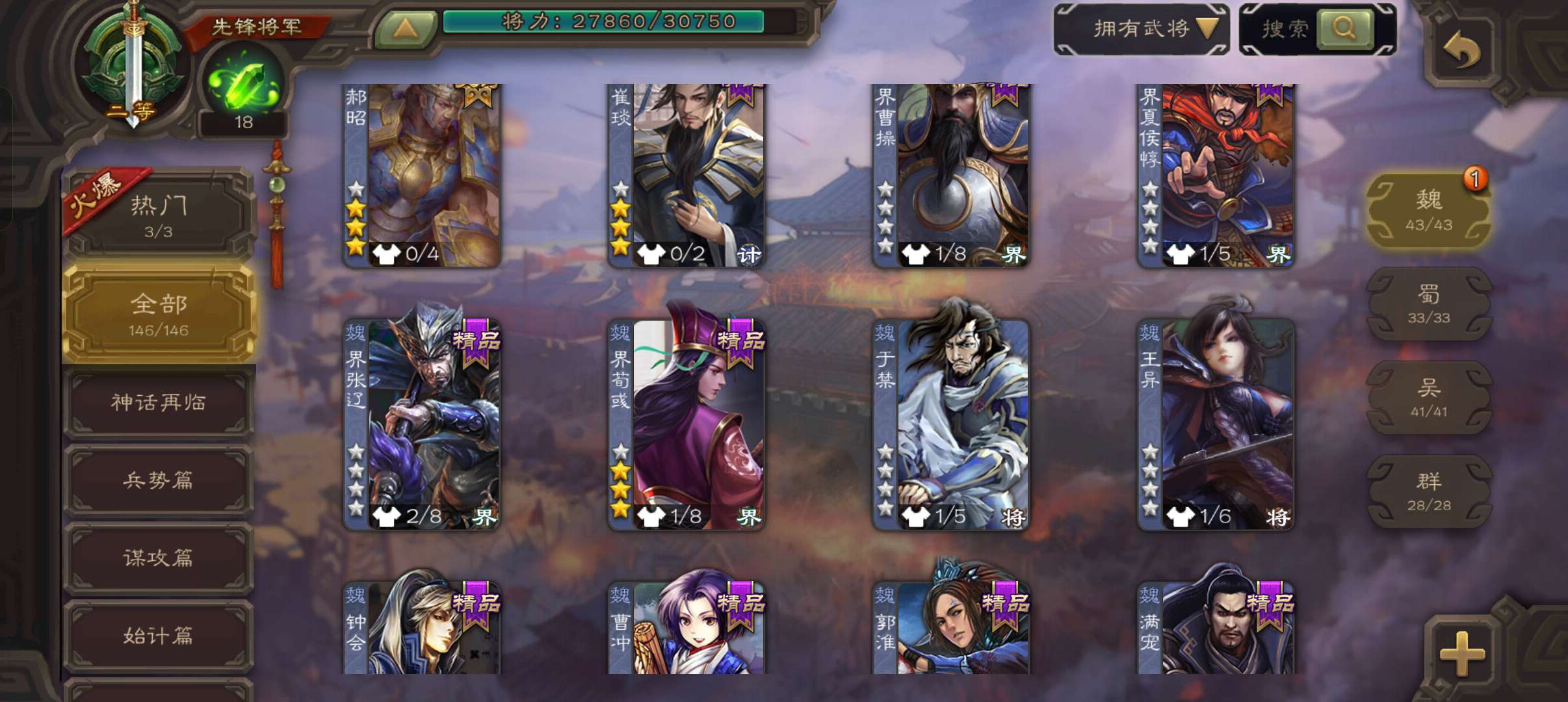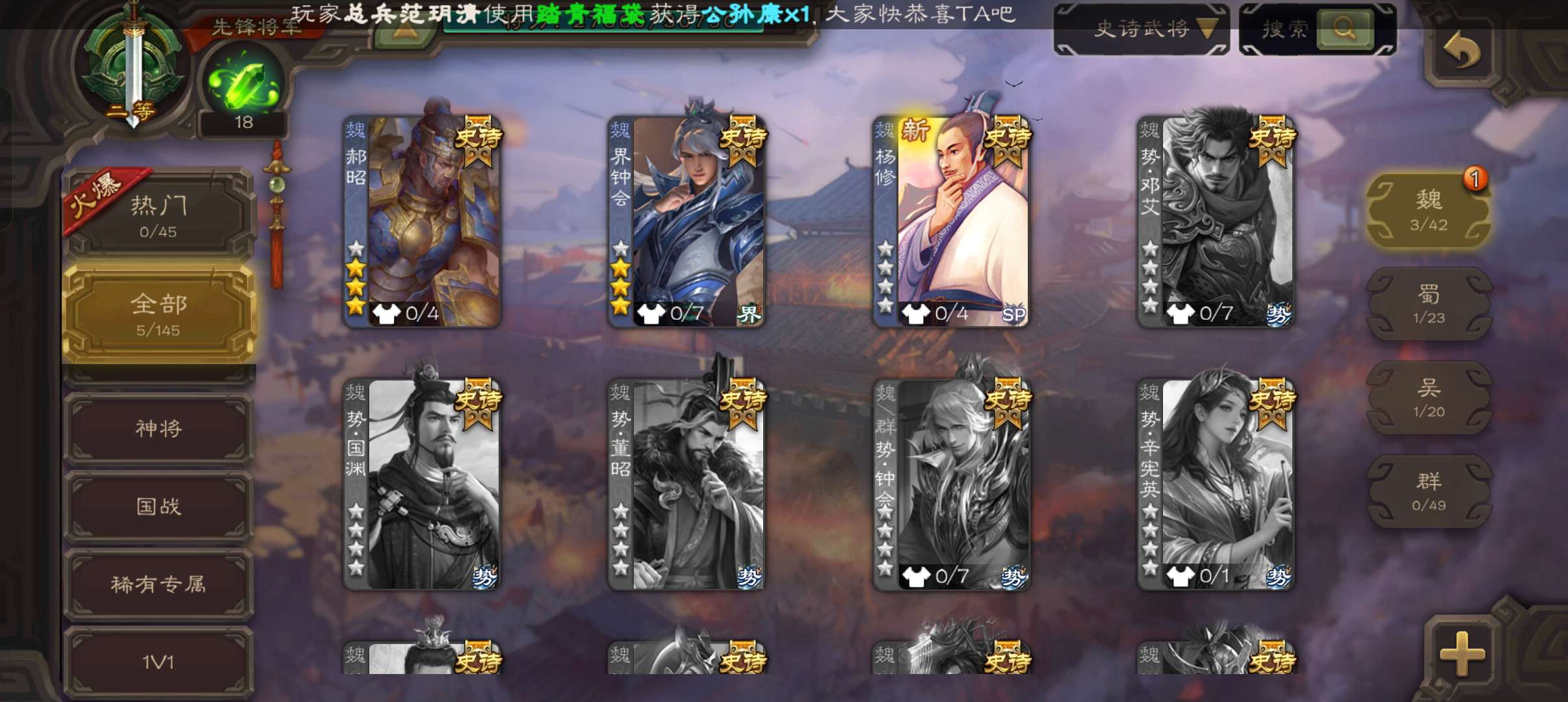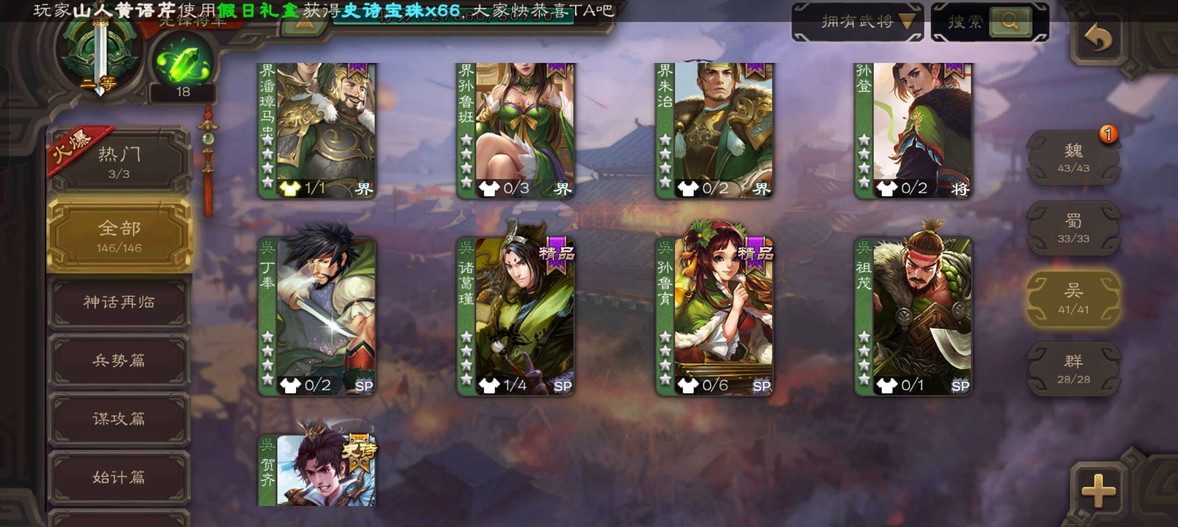 6.5万豆,冠绝天下界孙权,界钟会谋马超郝昭贺齐杨修5史诗先锋,神吕蒙动态界大乔谋韩当界满宠146将