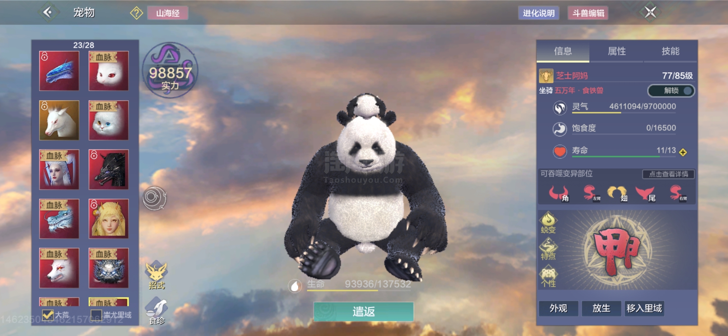安卓q-9个5万4个3万年神宠都培养了食铁兽98,000多实力了