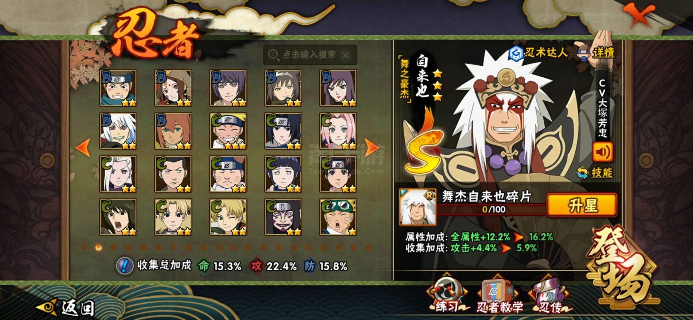 安卓QQ 段位中忍 A忍数量9 S忍数量3 VIP1 战斗力1833824 火影连体号经济又实惠