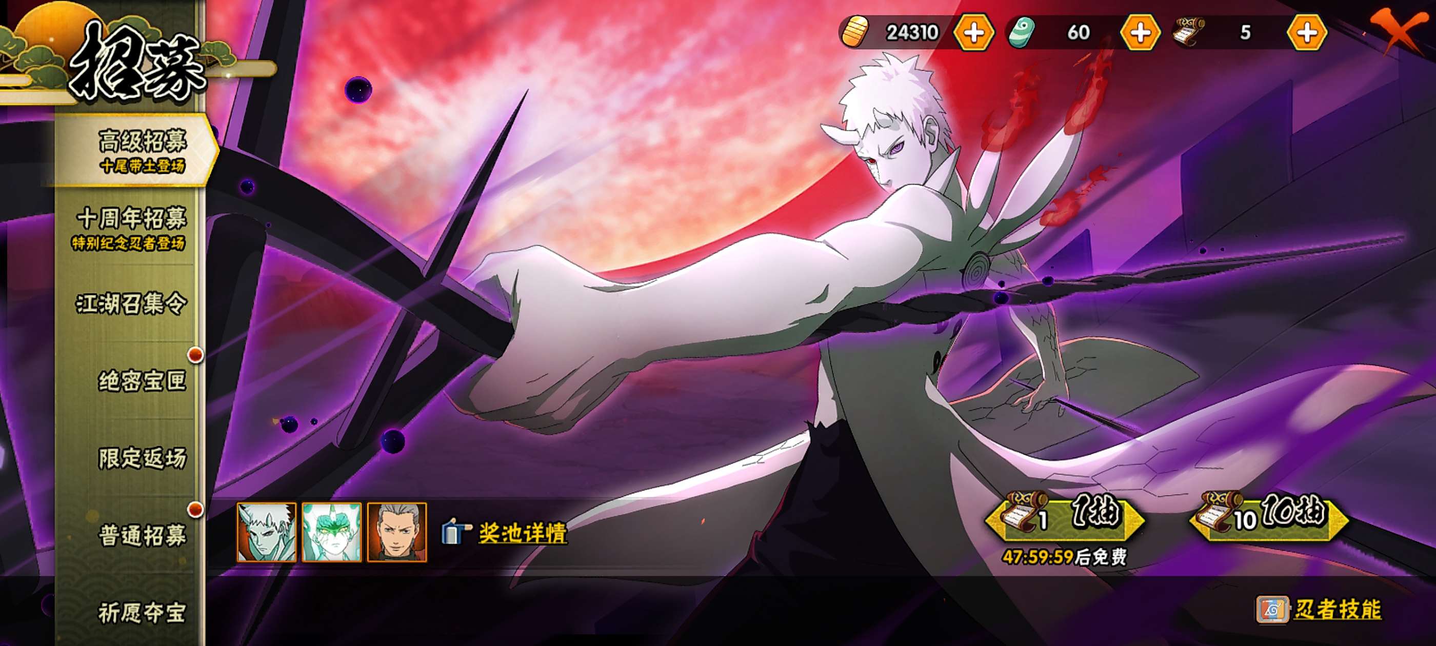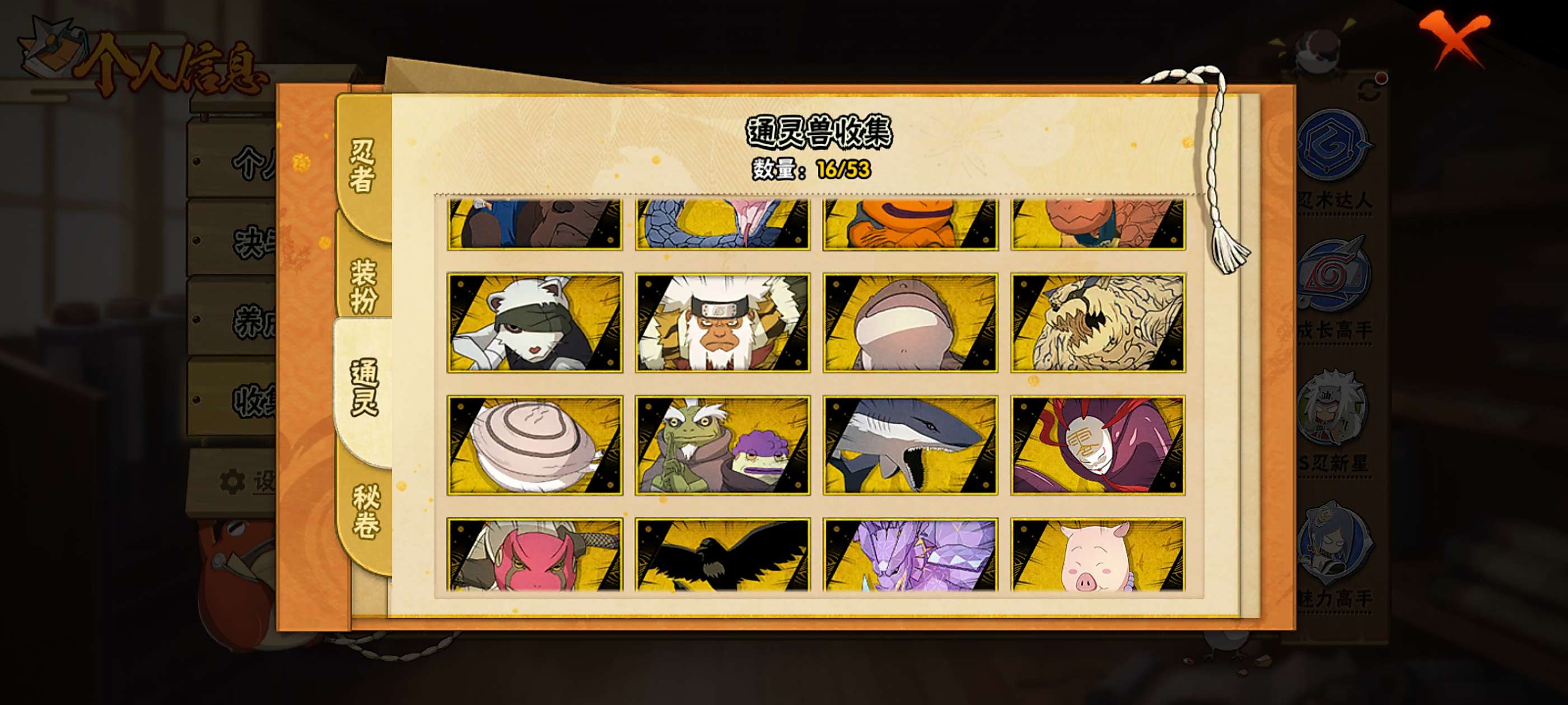 小李后高招全有,十尾带土50多片,现有两万多金币未花