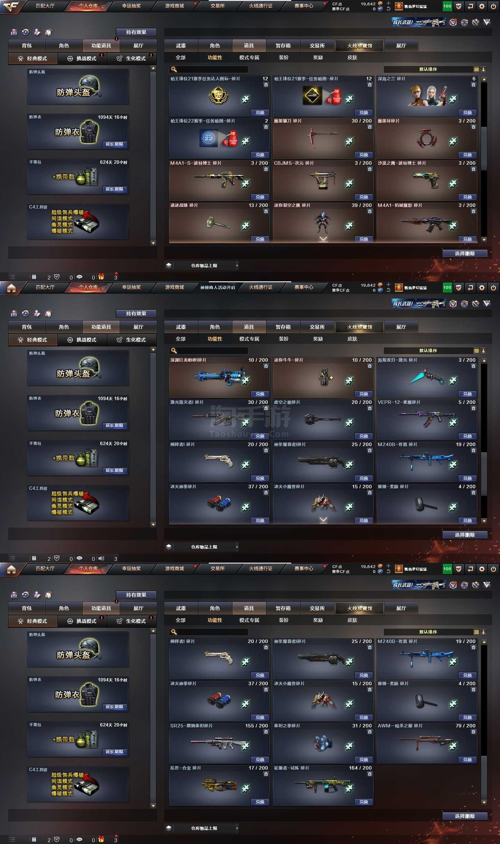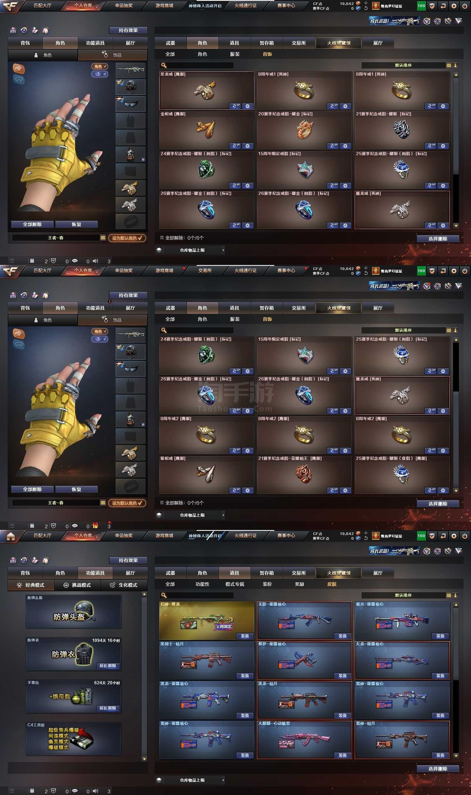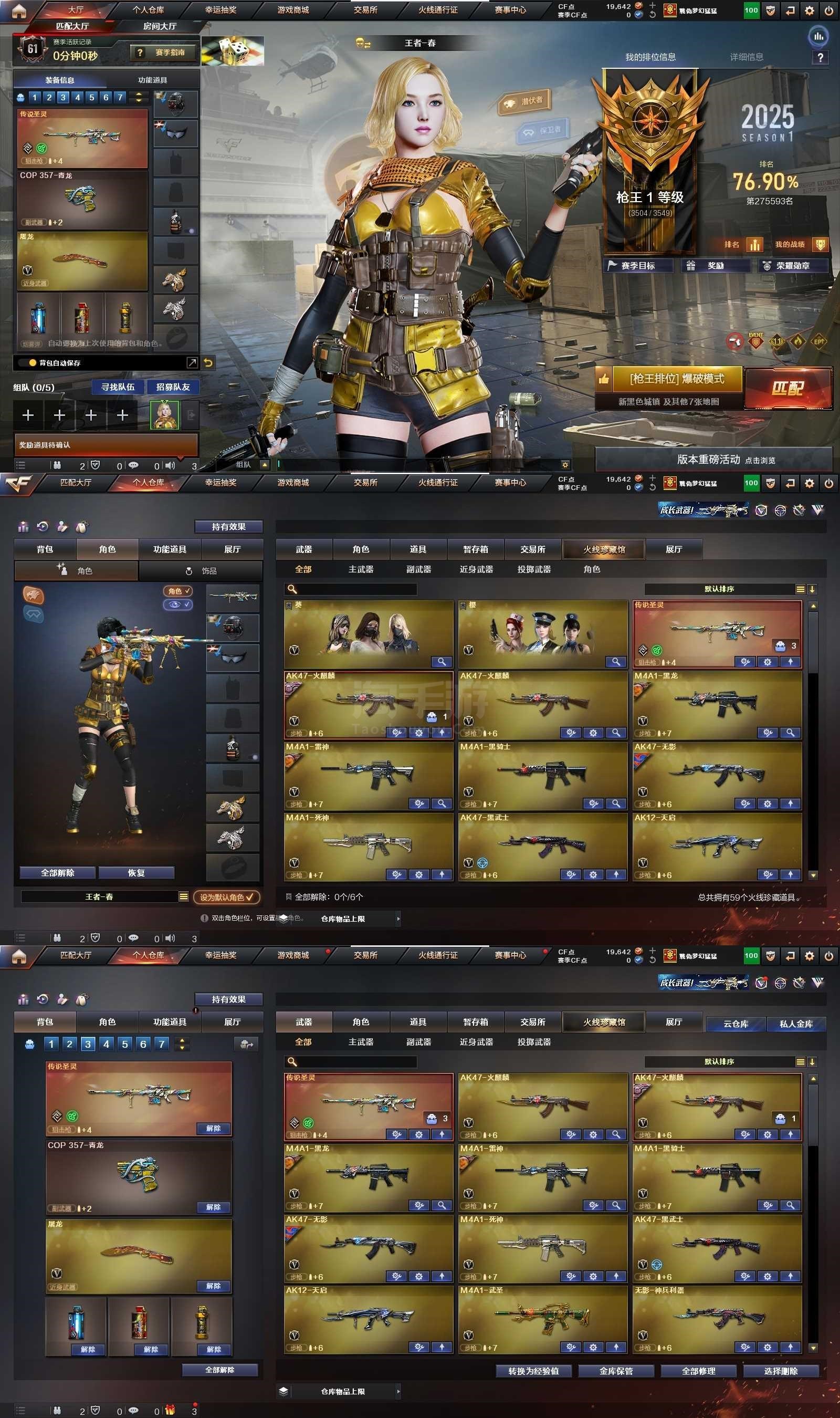 1传说武器 13王者武器 4炫金武器 58V武器 2V角色 12皮肤 可排位