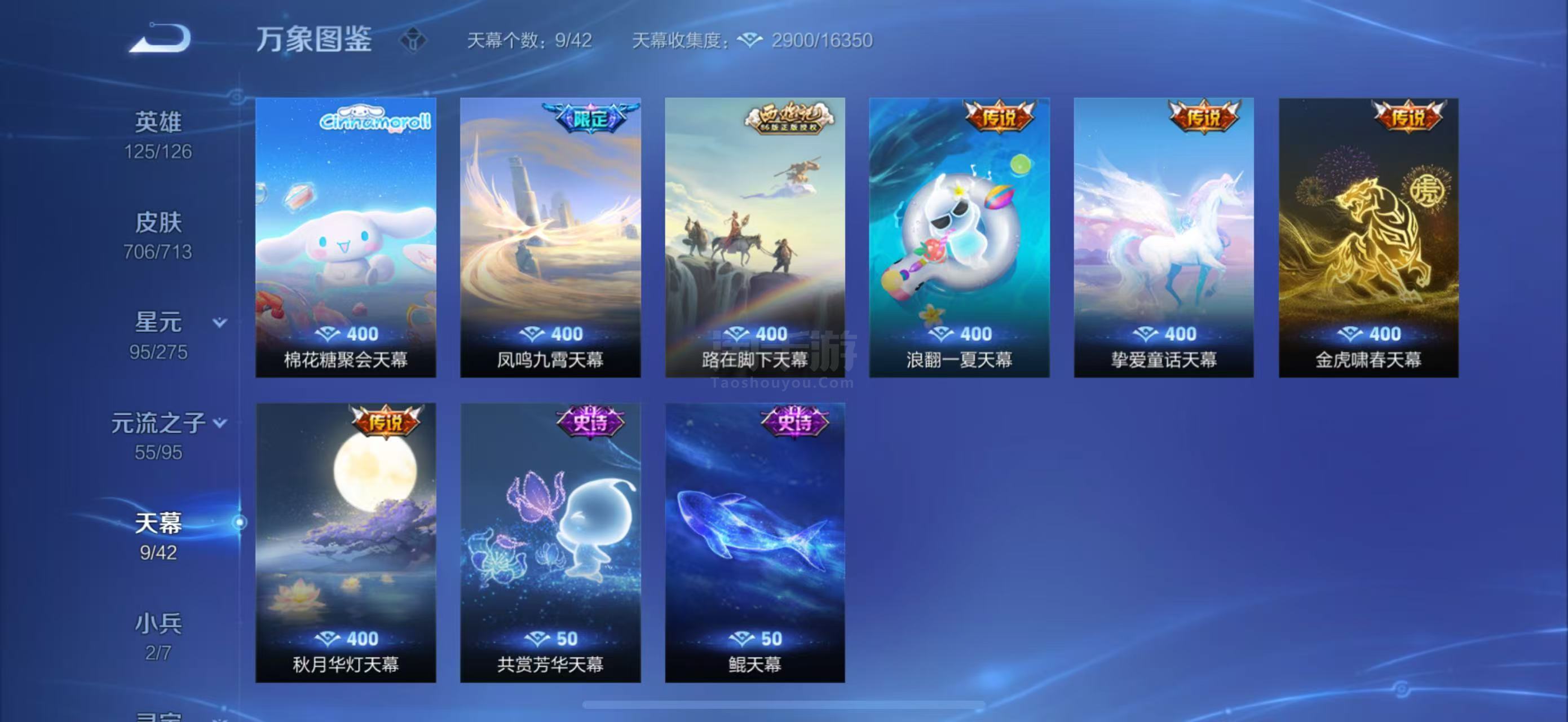 传说124 英雄120 皮肤607 贵族V10无双贵族 小国吕布 两个小兵皮肤 伪全皮账号 工作没时间玩,容易漏下新出的皮肤