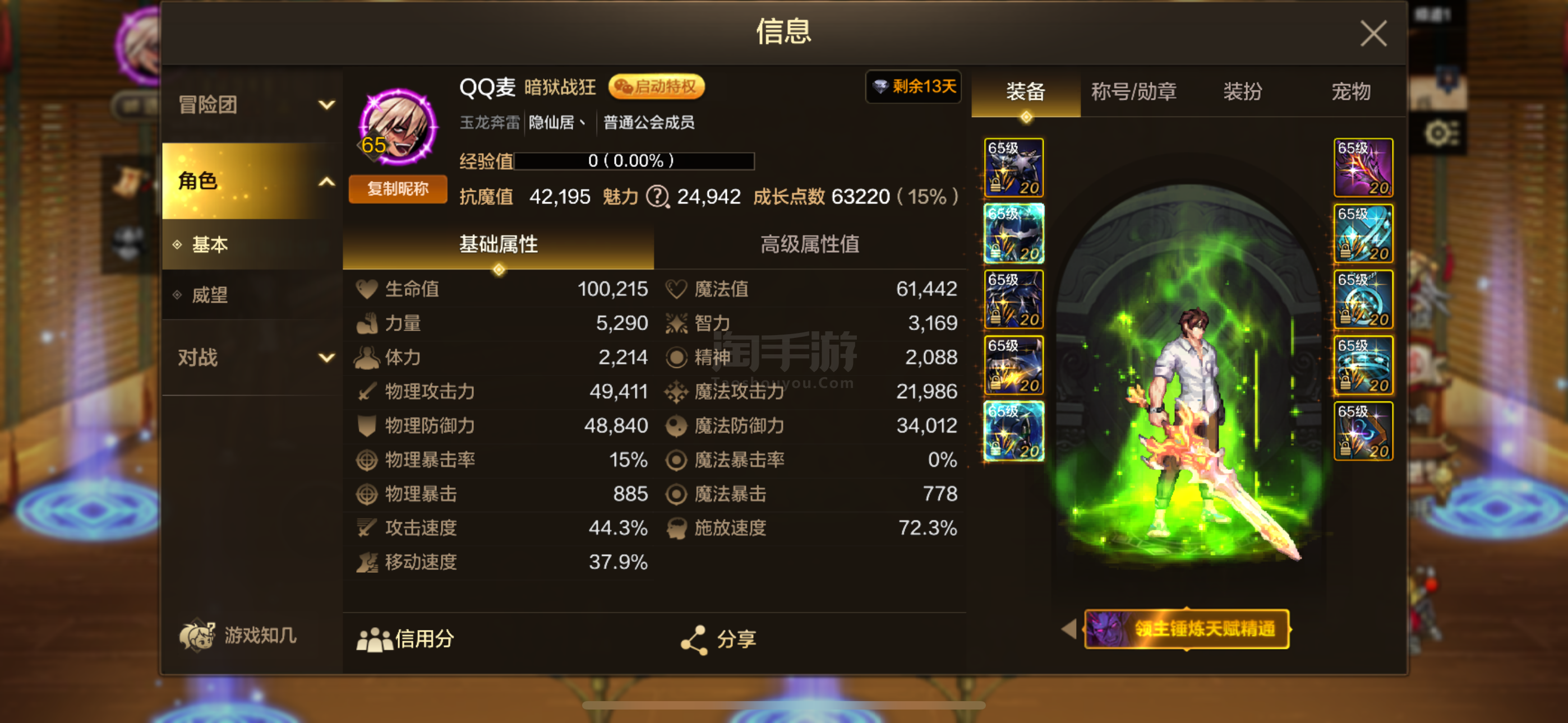 玉龙奔雷 武器强化等级20 抗魔值42195 职业鬼剑士 转职狂战士 不可二次实名 低价甩卖