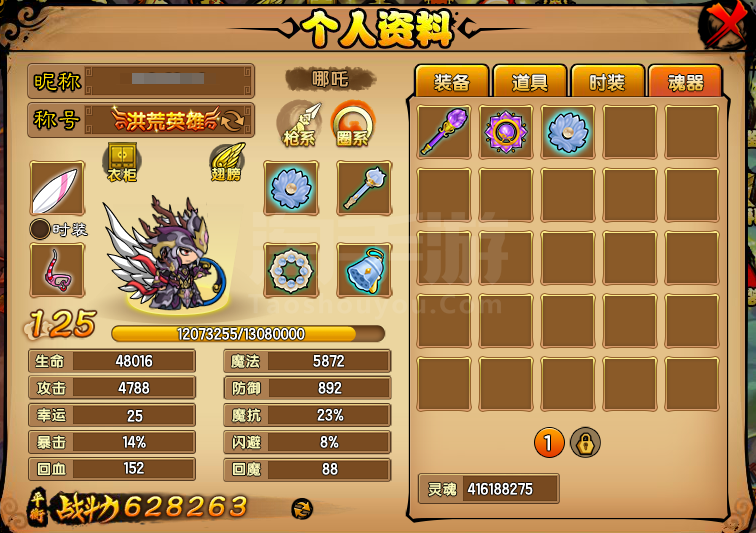 端游造梦西游4哪吒战力60w以上 配置洛湮一整套装备伽岚装备 第一心法+第二心法,永生魂器