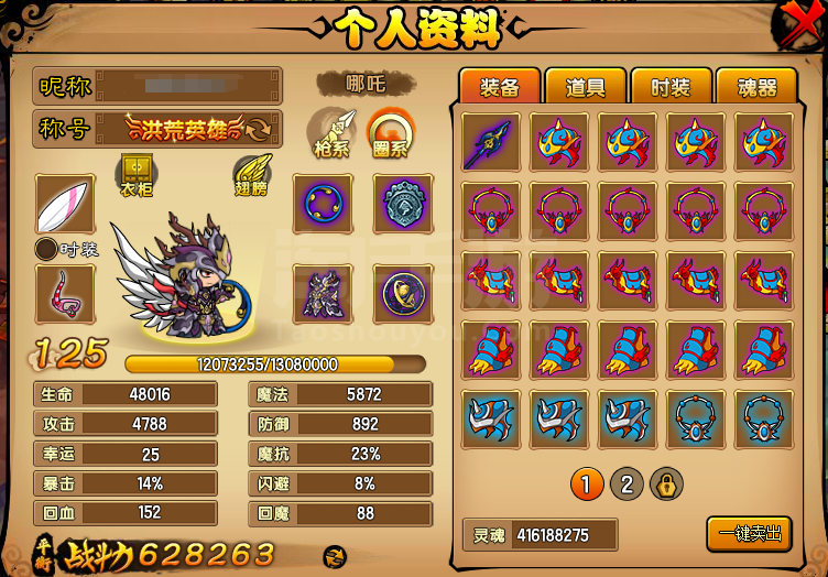 端游造梦4哪吒最新伽岚装备62w潜力号,带剑阵宠物坐骑法宝永生魂器一整套全天自动发号