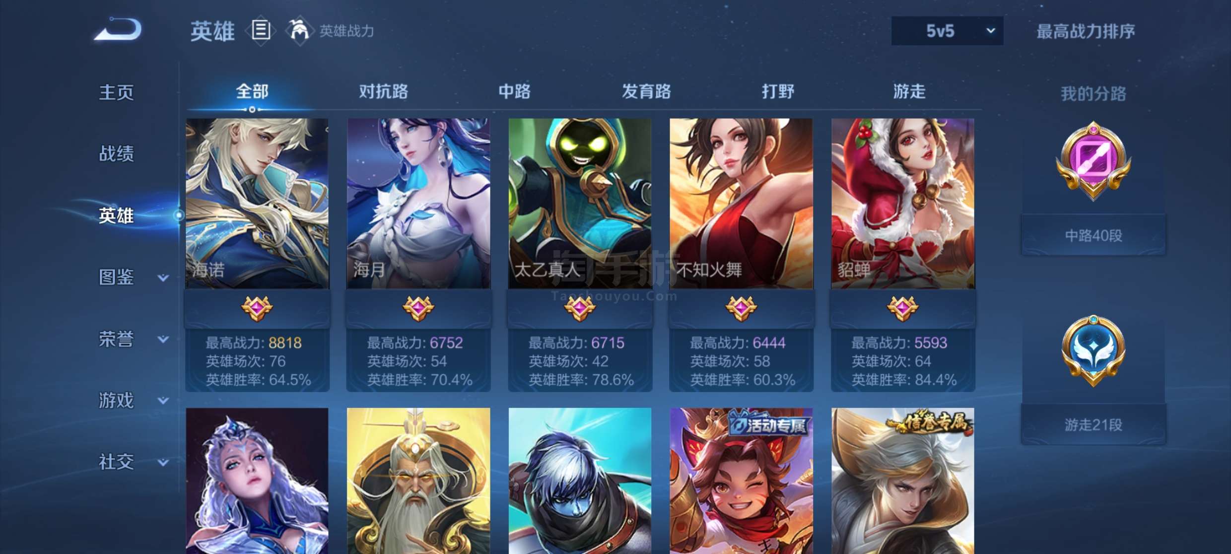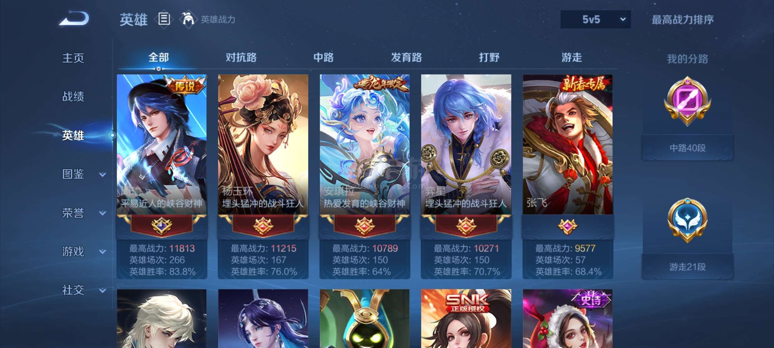 高胜率万战周瑜弈星杨玉环小号,可以发展为女号,战力为历史战力因为没定位