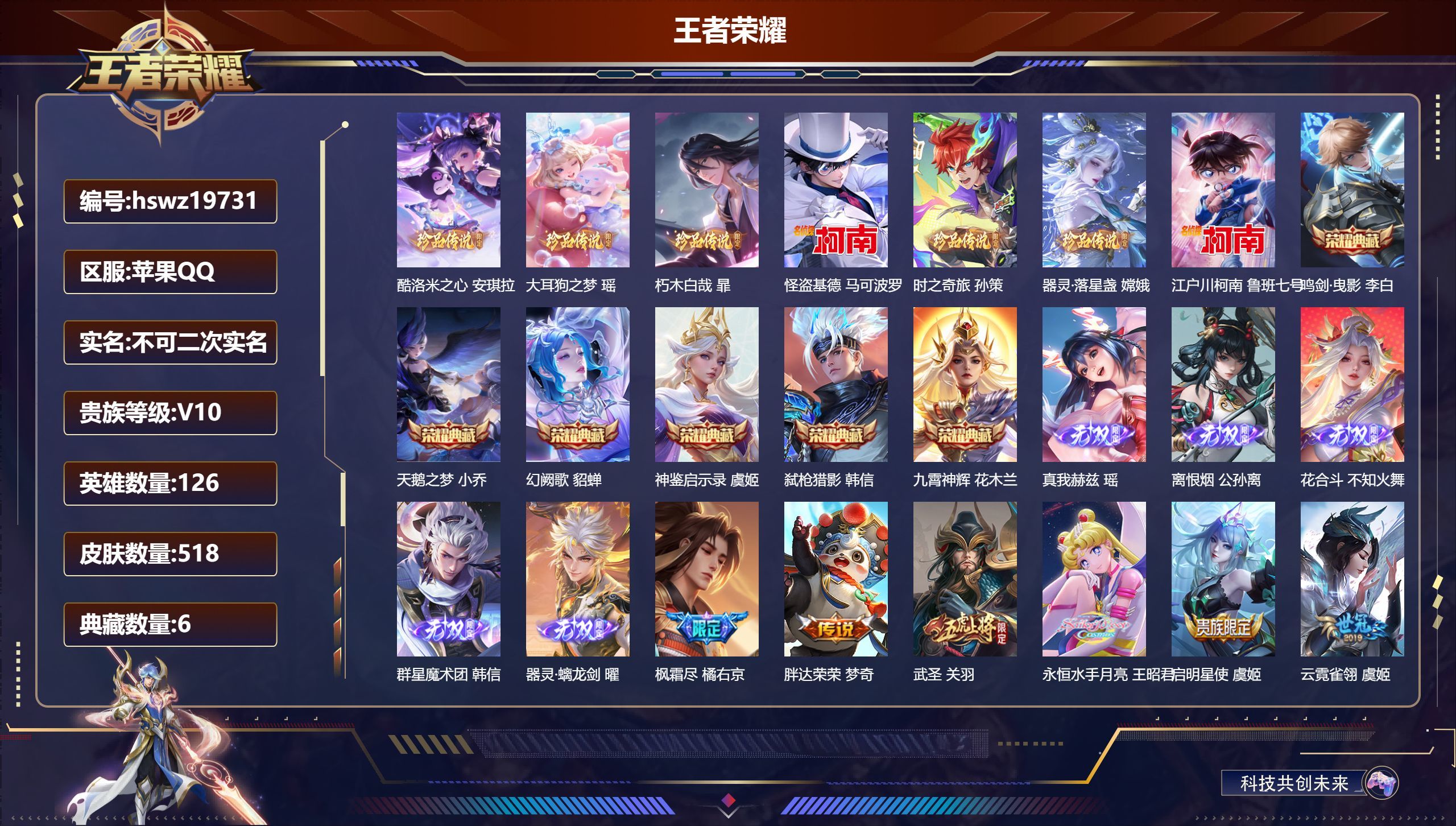 【商品标题】:90段发育路337皮4小国,小国鲁班1.75w战,小国狄仁杰1.5w战,小国孙尚香1.5w战,小国元芳1.2w战,巅峰历史最高2437,有小魔方和百星印记,安卓Q-V7-最强王者段位-122英雄-337皮肤-0典藏-0无双-2珍品传说-14传说-103史诗