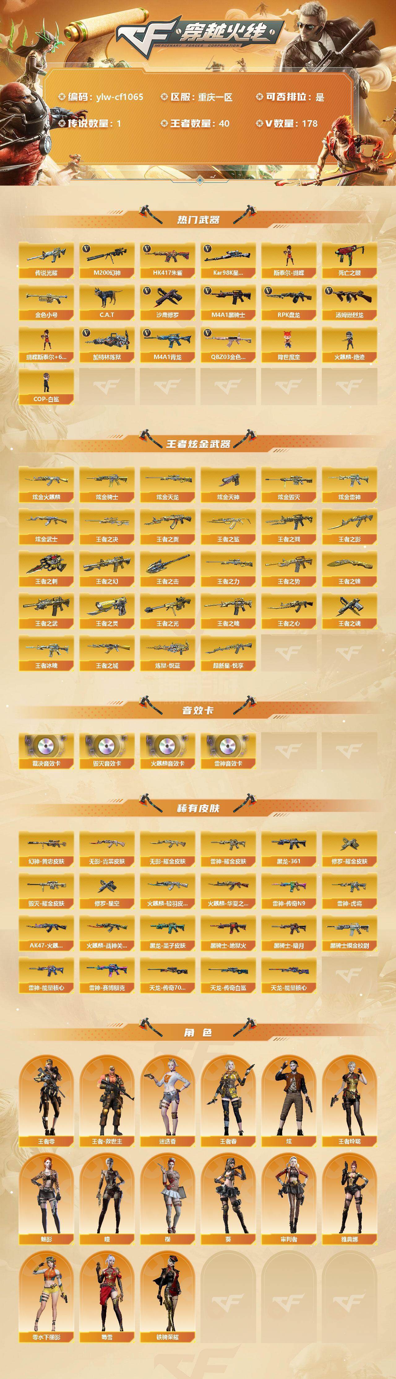 穿越火线(CF)【端游】重庆一区-178V-40王者-20炫金【传说武器】:传说光耀