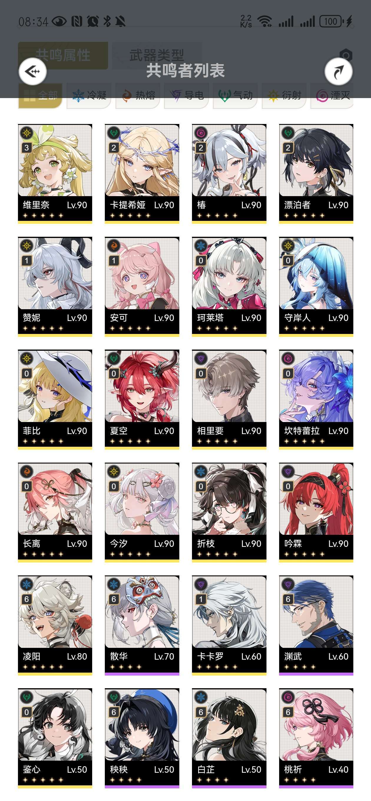鸣潮【安卓官方】自己号诚意出2+1卡提,2+1椿,满命雪豹,1+1赞尼,3命维里奈,1命安可,可组6队,50抽