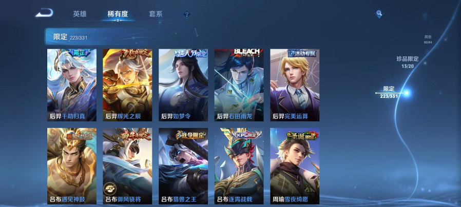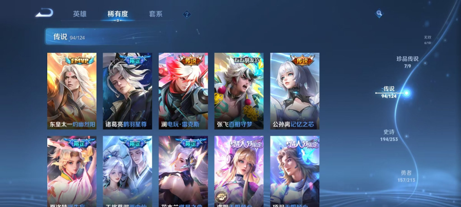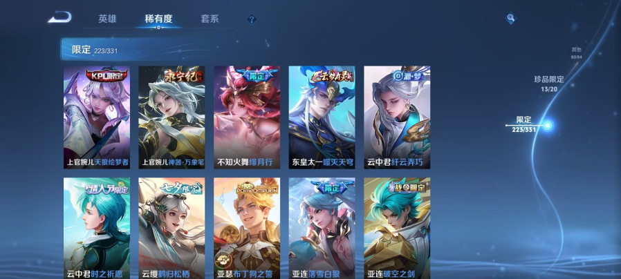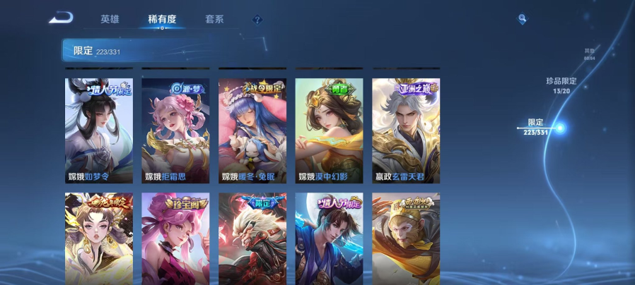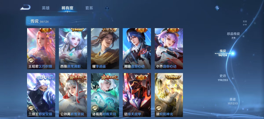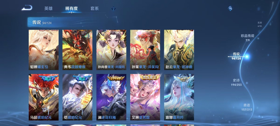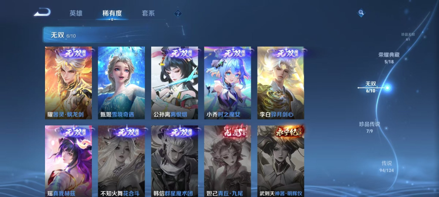 王者荣耀【安卓QQ】155-【女号无双V10 543皮肤6无双7珍品5典藏93