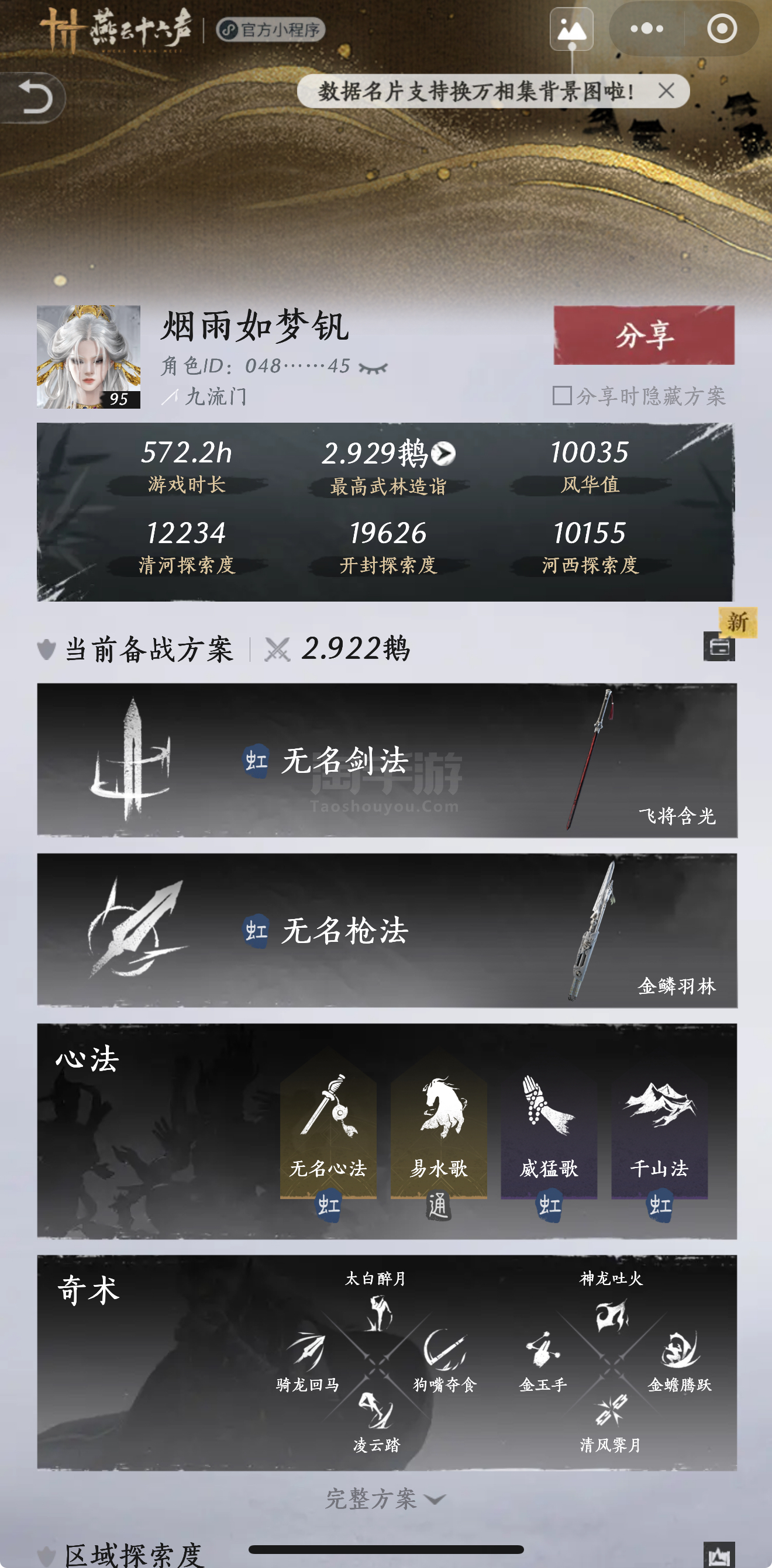 开服号一天没断肝接手随便转流派T0多细节账号 六重心法万剑归宗特效 一颗没用的八音窍和2300多宝钱 奇术全部突破6侠缘衣服全部肝完众生也肝了不用再肝了 门派衣服肝了4套了 有首领一剑称号