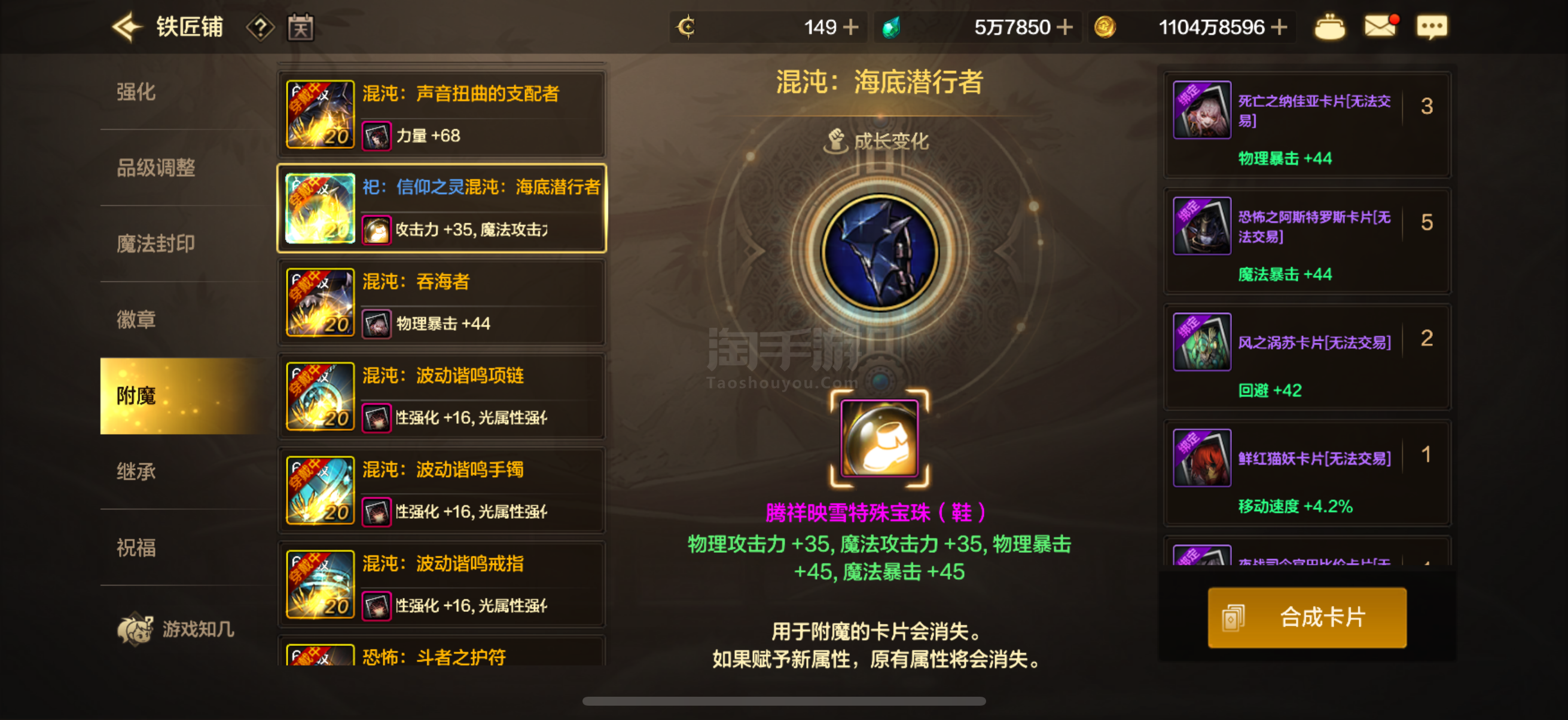 DNF手游【苹果微信】完美附魔鞋子宝珠武器宝珠称号宝珠51勋章➕宝珠双尊属强7➕6