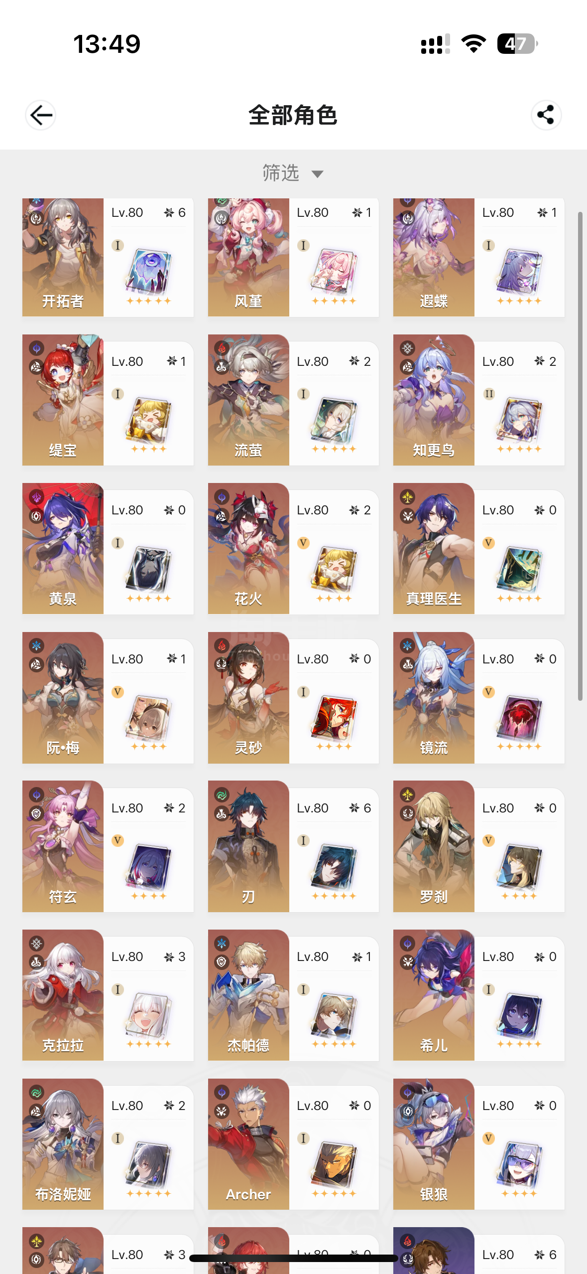 崩坏:星穹铁道【安卓官方】21白厄遐蝶流萤,11风堇阮梅,01花鸟,角色池已垫66抽,手上还有50多抽,可抽刻律