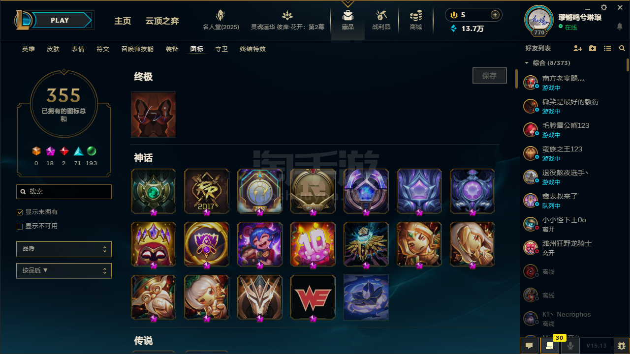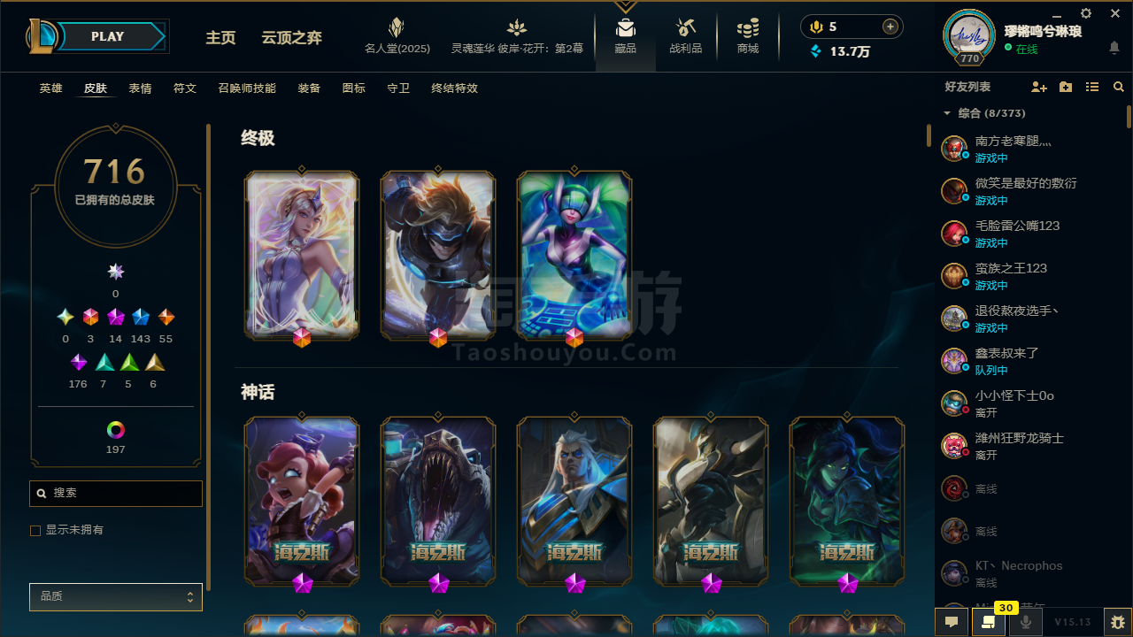 英雄联盟【端游】皮肤多多,有龙瞎ig皮肤签名全套