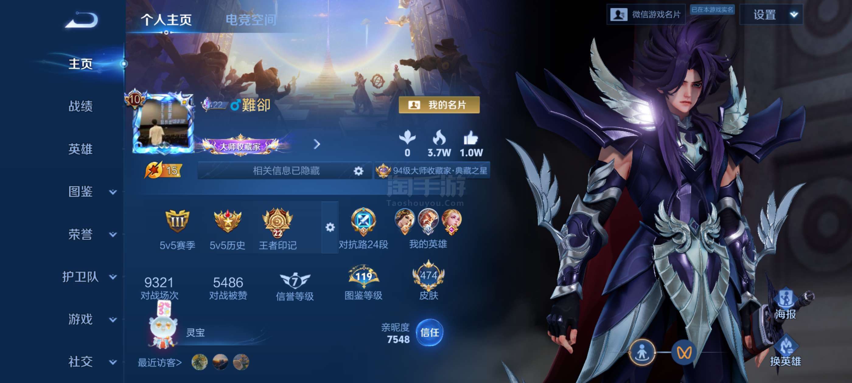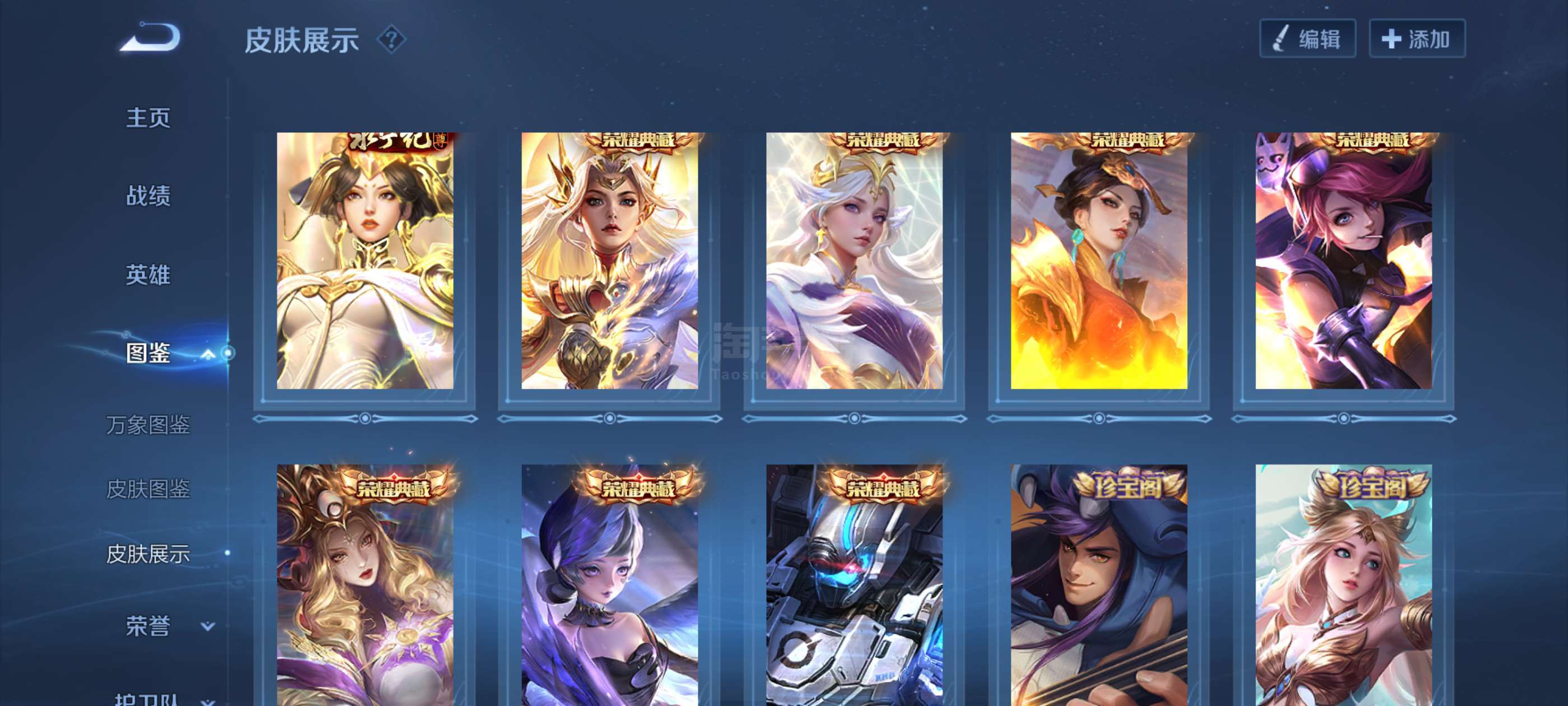v10号,可二次,474皮,8个荣耀典藏,另外还有一颗荣耀水晶没用,多限定和传说