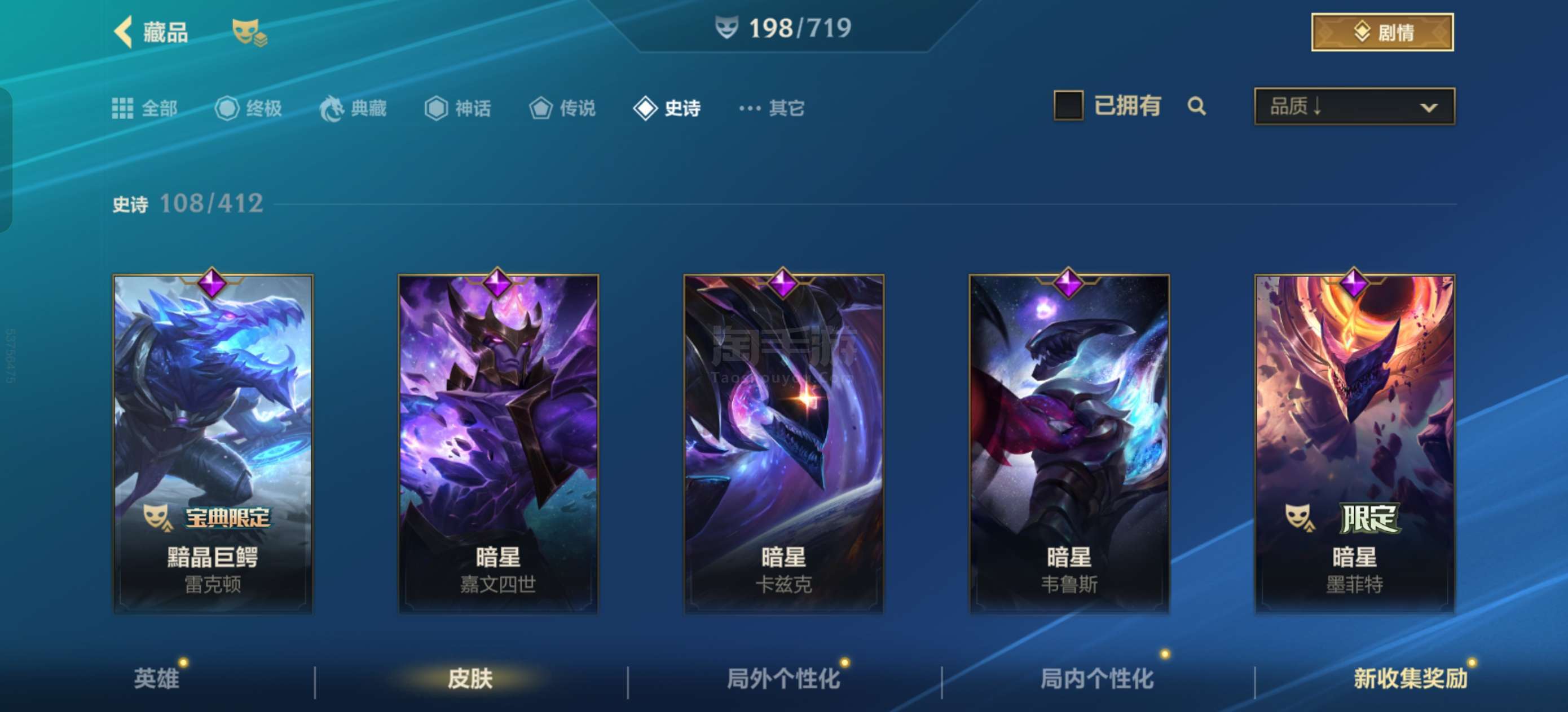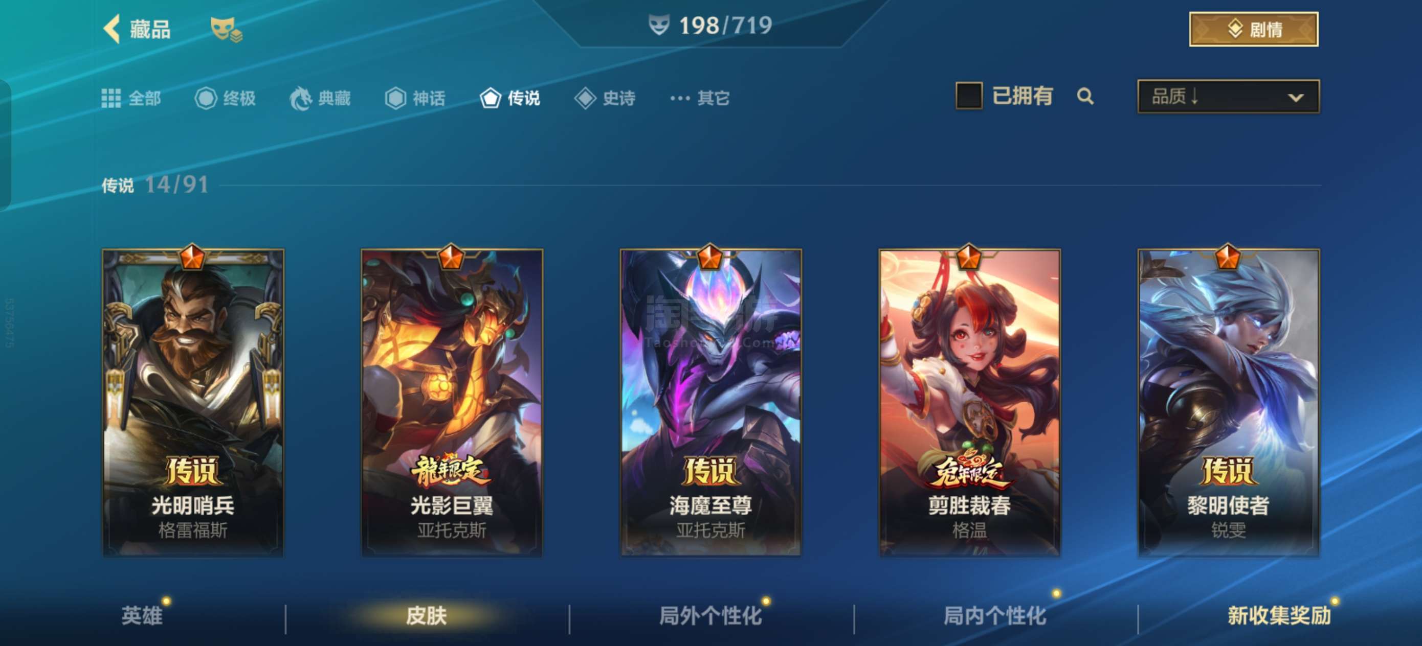 安卓qq 拿过传说 打野上单皮肤居多 kd巨高硬汉必选