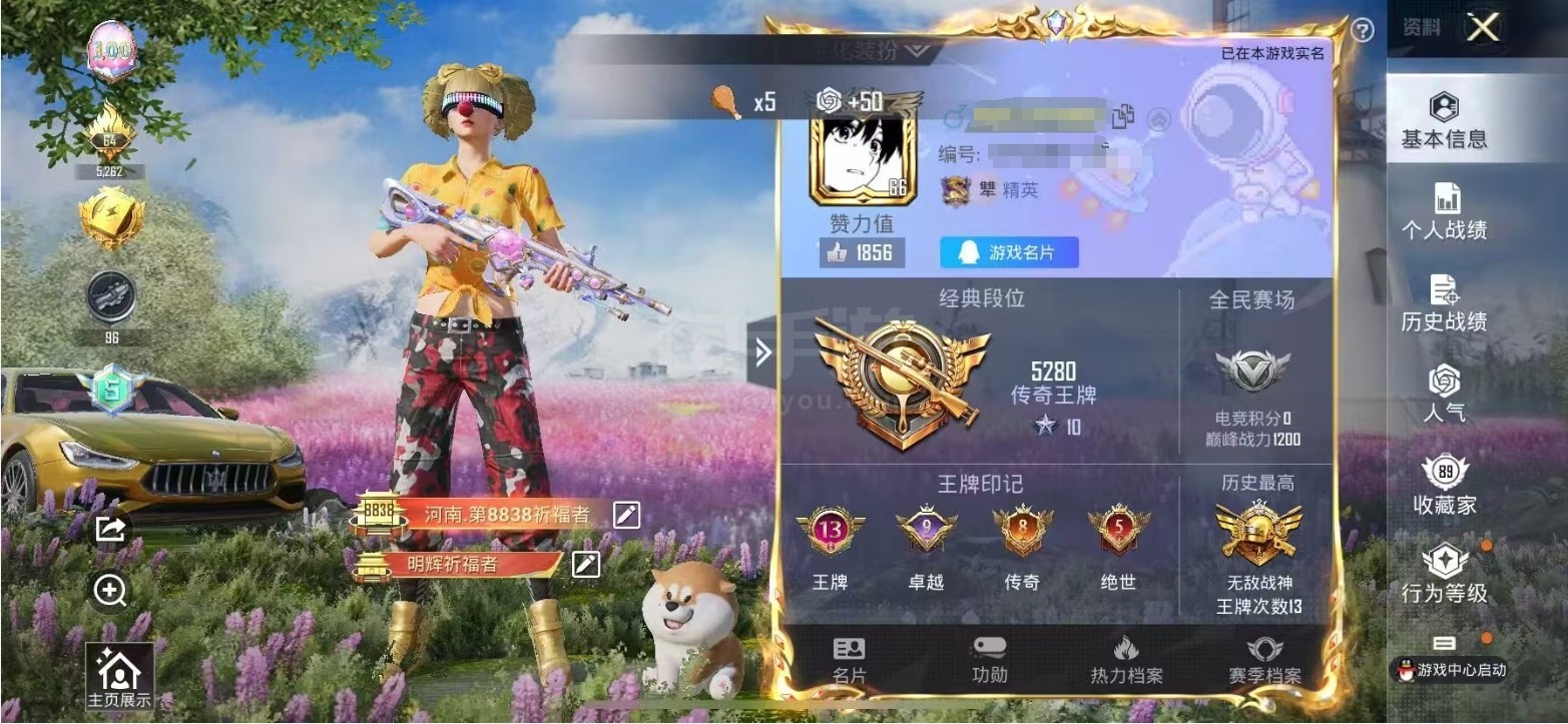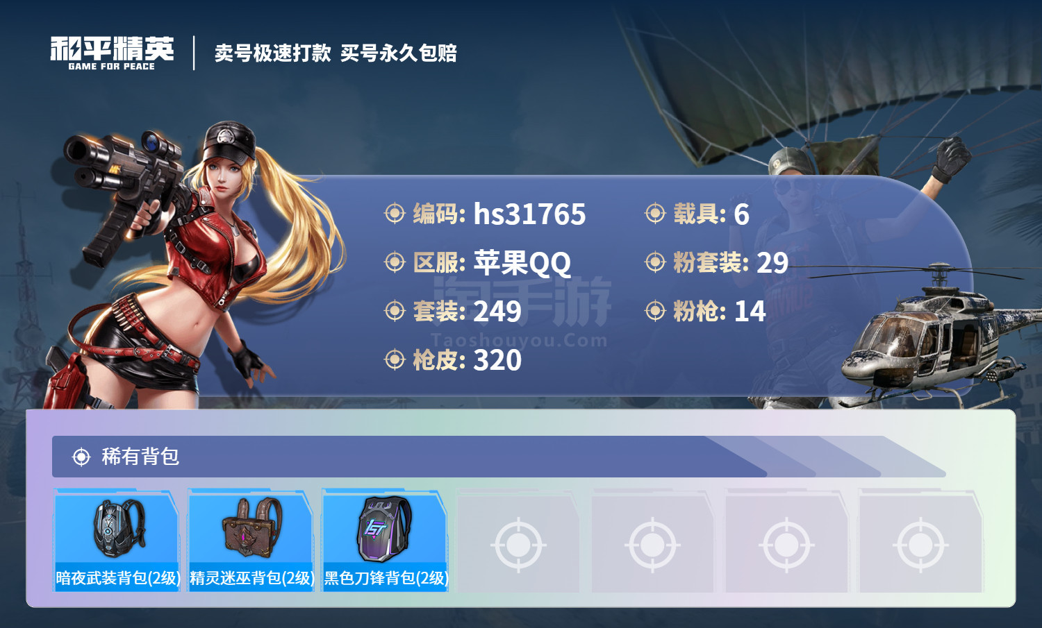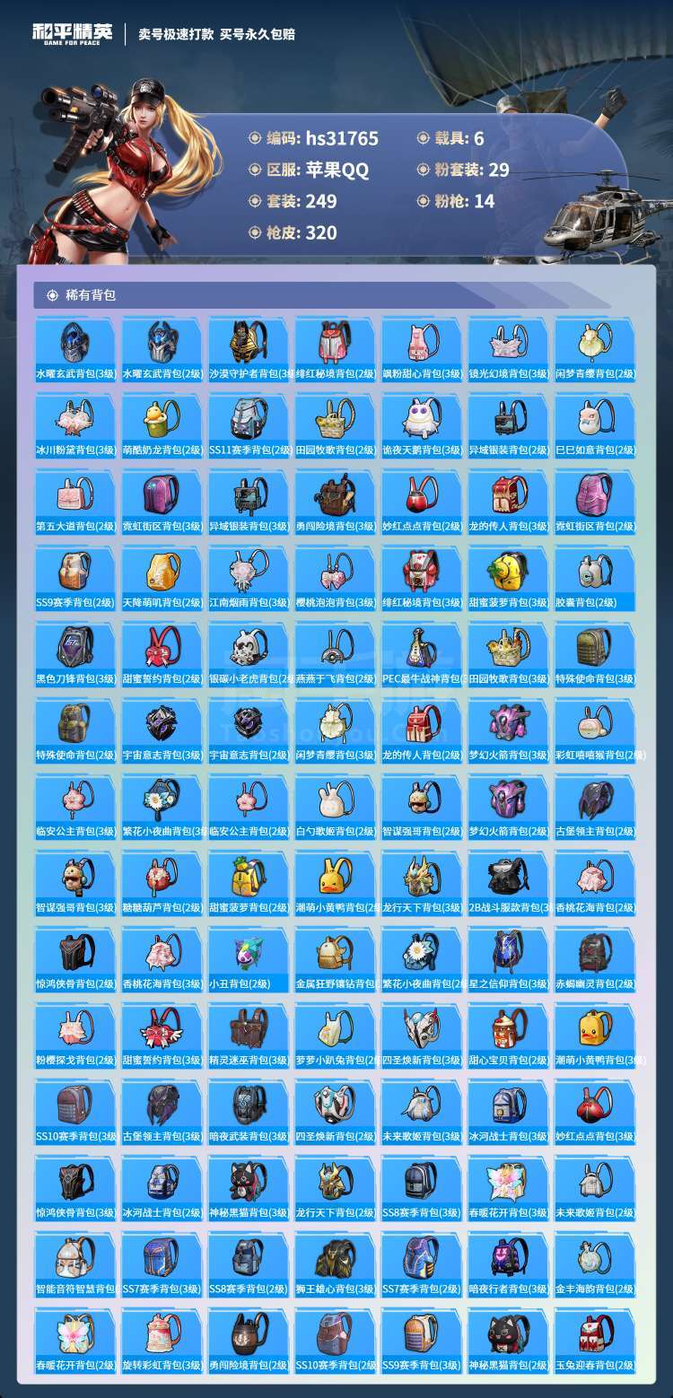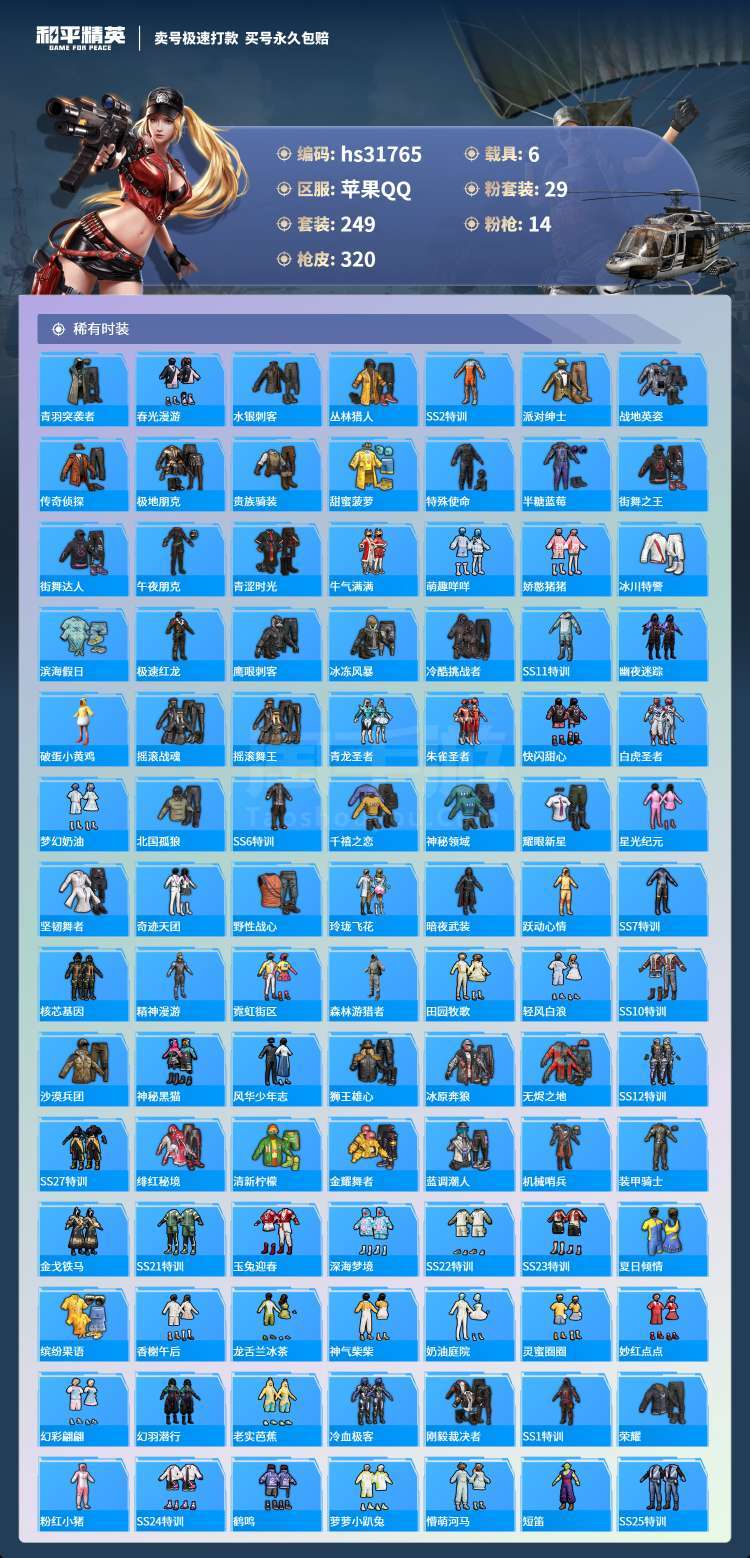 和平精英【苹果QQ】hs31765 苹果手Q-13王牌印记-有战神框-29粉装-14特效枪-6载具-138091热力值-